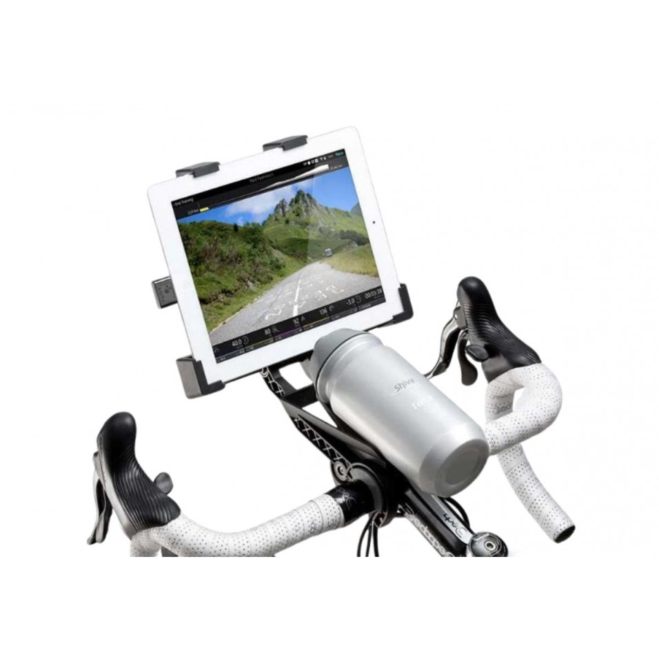 El Suport de manillar per a tablet Tacx acobla fermament la tablet al manillar a una distància òptima que et permet accedir a aplicacions i altres mitjans dentreteniment mentre entrenes.