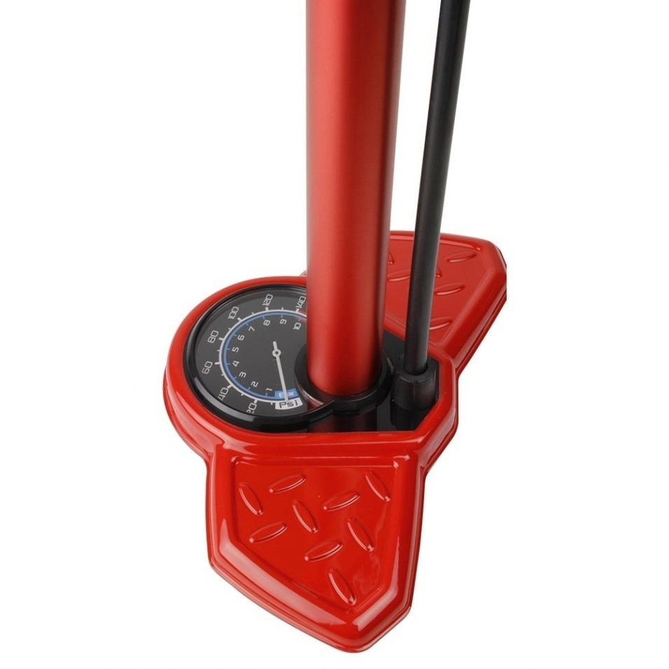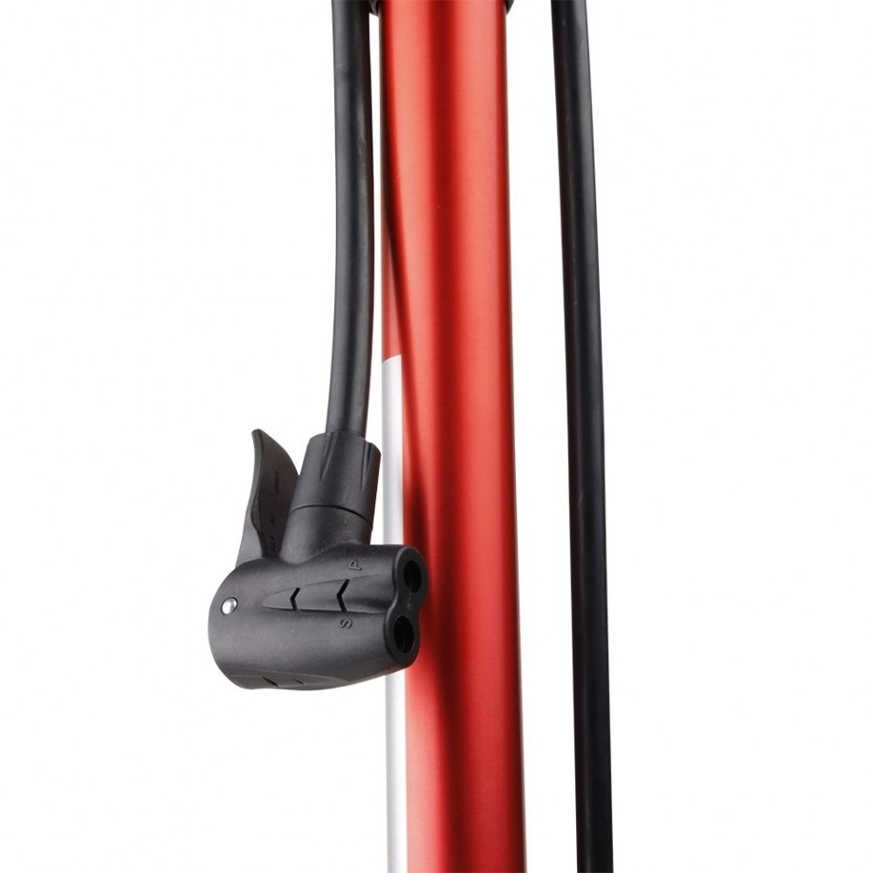 Perfecta per a bicicletes amb racor doble (presta/schrader), manòmetre, 140 PSI i mànec ergonòmic. Amb un cos d'alumini i un disseny molt cuidat que inclou suport per a peu i suport per subjectar el ràcord.