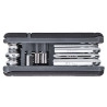 La Multieina Topeak Hexus X (21 funcions) que et presentem a Escapa compta amb un disseny actualitzat per guardar de manera segura puntes T15, T25 i hexagonals de 8 mm, a més de palanques per a pneumàtics muntades lateralment. Inclou una eina d'autoajustament (punta Torx® T25) i una eina per a nuclis de vàlvula Presta per prémer o afluixar nuclis de vàlvula Presta de dues peces. La Hexus® X és una excel·lent opció tant per a ciclistes de carretera com de muntanya.