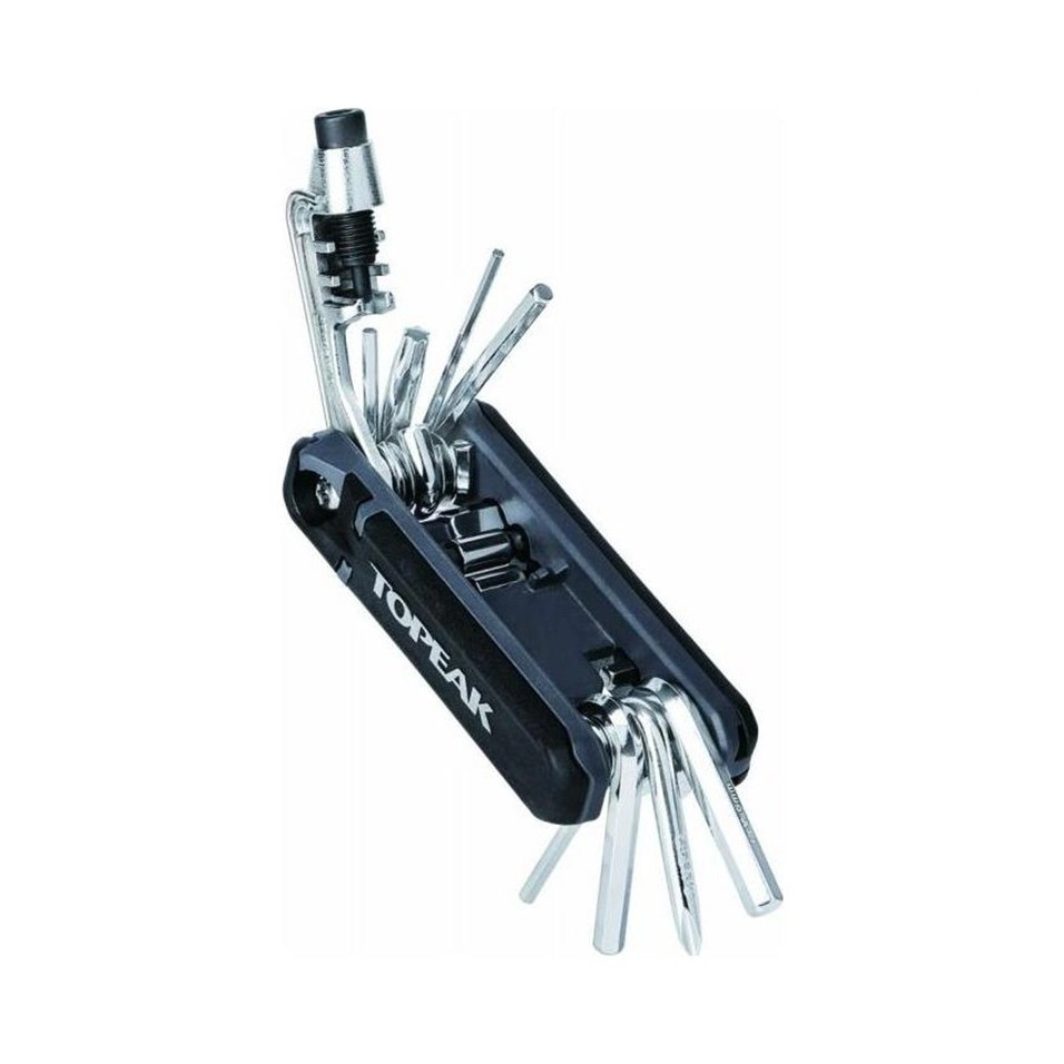 Guardonada eina de 21 funcions amb un disseny actualitzat per emmagatzemar de forma segura bits de T15, T25, 8 mm hexagonal i desmuntables als laterals. Inclou una eina d'ajustament automàtic (T25 Torx®) i l'eina Presta Core per prémer o treure els nuclis de dues peces en vàlvules Presta. Hexus X és una excel·lent opció per a ciclistes de carretera i mountain bike. Tronxacadenes compatible amb cadenes d'una velocitat i múltiples de fins a 12 velocitats. No és compatible amb Campagnolo 11 velocitats. Claus Allen: 2 / 2.5 / 3 / 4 (2 pcs) / 5 / 6 mm tool bit · 8 mm hex Torx® bits: T15 / T25 Torx® wrench: T30 Tornavís #2 Phillips, Clau de radis 14G /, Ganxo de cadena d'acer, 2 desmuntables de plàstic, Eina Presta Core i tronchacadenes d'acer. Mida: 9 x 4 x 2.7 cm Pes: 170 g