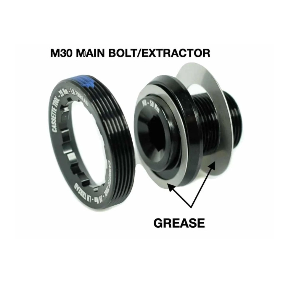 ESPECIFICACIONS PRODUCTE: M30 Pern principal i autoextractor per a bieles Praxis M30. COMPRA AIXÒ SÍ: Està arreglant/substituint el cargol principal d'un braç de biela M30. DISSENY: Cargol principal i autoextractor tot en un kit. 8mm hex. per a la instal·lació i extracció del braç de biela L'eina de casset s'utilitza per descargolar l'extractor si mai és necessari. Informació del cargol - M16 x Pas 1.0 x Longitud 16mm PARELL 50Nm | 8mm hex per a muntatge i desmuntatge del braç de biela |