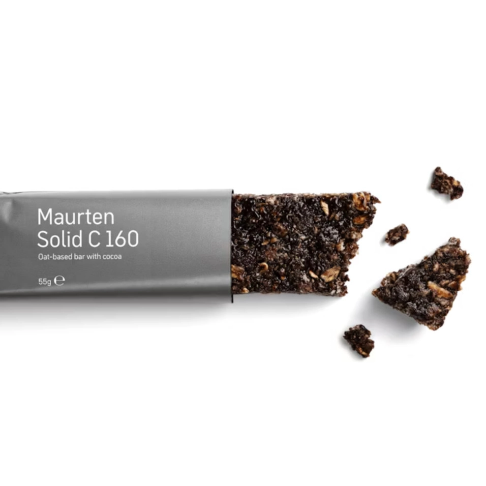 La Barreta Maurten Solid C 160 EU és una barreta de civada, arròs i cacau que conté 40 g de carbohidrats: combustible masticable de textura renovada. Imprescindible a la precàrrega i la reposició de carbohidrats. Es divideix fàcilment en dues parts iguals per calcular el consum de carbohidrats.