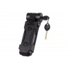 Característiques: Dos sistemes de fixació a la bici. Amb cargols al lloc del bidó o amb corretges. Clau de seguretat reversible amb esquerdes Material Barres d'acer endurit de 14 cm Cilindre antiganzua i antitrepant Estructura de barres unides entre si Pes: 712 g. Mides desplegat: 780 mm. Mides plegat: 170 x 55 mm. Mides diàmetre: 220 mm. |