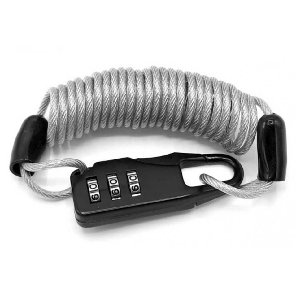 Característiques: . Lleuger i fàcil de transportar . Combinació de 3 dígits personalitzable . Cable d'acer extensible fins a 1.5m amb recobriment plàstic per no fer malbé la bicicleta . Ideal per assegurar cascos, motxilles etc |