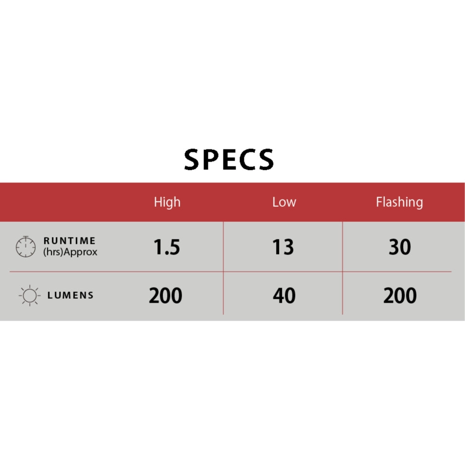 Far AMPP 200 Llum recarregable USB-C de 200 lúmens amb excel·lent visibilitat lateral. Una versàtil corretja de goma permet fixar-la i retirar-la ràpida i fàcilment del manillar. Far davanter recarregable compacte (200 lm) Fàcil de col·locar i retirar, nova corretja de goma de muntatge Excel·lent visibilitat lateral Indicador de bateria baixa Recarregable per USB-C (cable USB-C no inclòs) Funció de memòria de mode Tres modes de llum (alt/baix/intermitent) S'encén en mode intermitent amb un doble clic al botó d'encesa Del darrere VIZ100 3 LED (100 lm) Altament visible durant el dia. Visibilitat de 300 graus. Projecció del darrere de llarg abast. Tecnologia de lents OptiCube™. Bateria recarregable de ions de liti. Recarregable per USB-C (cable USB-C no inclòs). Indicador de bateria baixa. Quatre modes de llum (constant / intermitent / grup / Daytime HyperFlash) Funció de memòria de mode Estalvi automàtic de bateria (el mode canvia automàticament a intermitent quan la bateria s'esgota). Nou suport per a tija de selló SP-15 que s'adapta a las tiges de selló aerodinàmiques contemporànies (kammtail) Snap System ™ Autonomia: AMPP200 High mode 200 lumens:1.5hrs Low mode 40 lumens:13hrs Flashing mode 200 lumens:30hrs ViZ100 Constant (15 lumens):5hrs Flashing (10 lumens):70hrs Group Ride (4 lumens):33hrs Daytime HyperFlash (100 lumens):15hrs Battery: AMPP200 Li-ió rechargeable battery ( 3.7V-800mAh ) ViZ100 Li-ion rechargeable battery ( 3.7V-500mAh ) Recharge time : AMPP200 approx 2.5hrs (0.5A) ViZ100 approx 3hrs (0.5A) |
