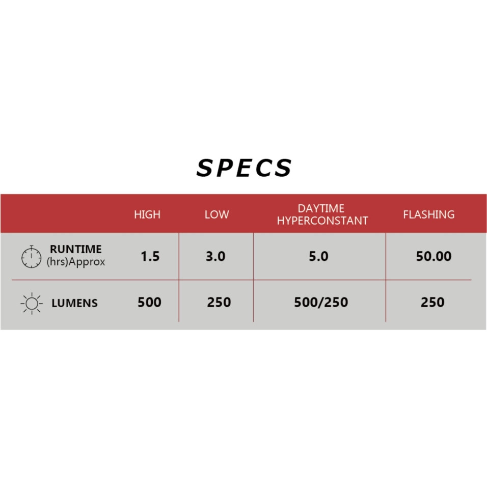 Característiques: Sortida màxima de 500 lúmens Tecnologia de lent Opticube per a una distribució suprema de la llum Robust cos de policarbonat mat amb més resistència a les ratllades Suport FlexTight: apte per a manillars de fins a 35 mm de diàmetre i determinats manillars aerodinàmics Sortida de lúmens 2,5 vegades superior en mode baix en comparació amb la Volt 500XC, per a més versatilitat Lent lateral un 220% més gran per a un feix de llum significativament més ampli i una visibilitat lateral millorada Il·luminació del botó d'encesa i indicador vermell al 20% de capacitat de la bateria Connexió inferior redissenyada per facilitar l'extracció del suport FlexTight Doble clic per a mode Alt, un sol clic torna al mode anterior Memòria de mode de llum Temps de recàrrega 4hrs (1A) - 8hrs (0.5A) Bateria: Li-Ion 3.6v 2200mAh Índex d'impermeabilitat: IPX4 Pes: 95g |