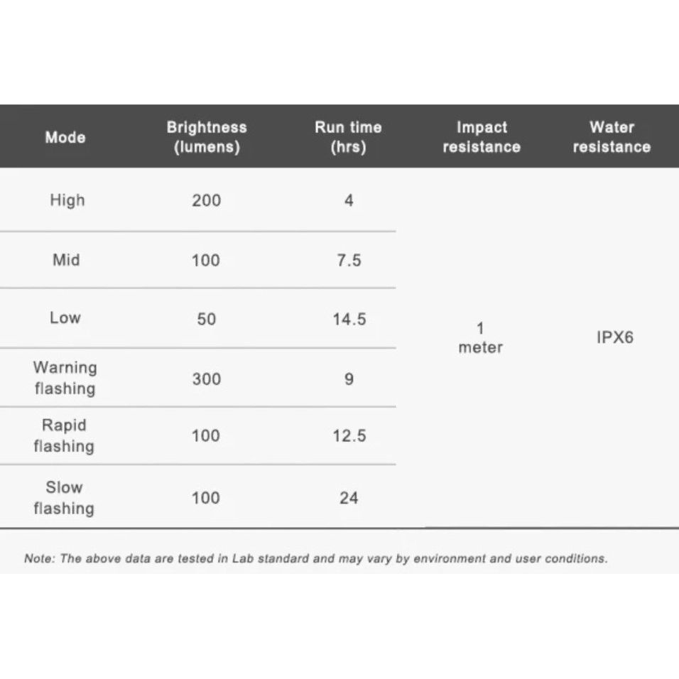 Característiques: Mode intermitent d'advertiment visible durant el dia més brillant: Amb el cridaner mode intermitent d'advertiment de 300 lúmens, FR300 el mantindrà visible durant el dia; 3 modes constants i 3 modes intermitents per a diverses passejades. Lent gran angular amb visibilitat lateral: Augmenti la visibilitat lateral quan circuli per la cruïlla. Suport de quart de volta estàndard de Garmin : La llum es pot muntar entre el suport per a bicicleta Garmin i els ordinadors. Adaptadors per a ordinadors Wahoo inclosos: Per las ordinadors Wahoo , reemplaça els adaptadors Garmin superior i inferior pel de Wahoo . (Nota: El FR300 no és compatible amb el suport frontal original Wahoo Element Bolt Aero). Port de càrrega i descàrrega USB-C: Carregueu la llum fàcilment o utilitzeu-lo com un banc d'energia de seguretat per carregar l'ordinador de bicicleta (cable USB-C i cable d'USB-C a micro USB inclòs). Advertiments: NO carregueu el telèfon mòbil o altres dispositius amb la llum, en cas contrari podria danyar la llum i anul·lar la garantia NO carregueu ni descarregueu la llum quan plogui. Manera d'encesa i apagada automàtica: Operació mans lliures i sense preocupar-se per oblidar apagar la llum. Corretja inclosa per a més seguretat: Use la lligadora per assegurar la llum o l'ordinador per muntar en grava o en carretera sense pavimentar. Disseny de resistència a l'aigua IPX 6: La llum es pot fer servir fins i tot sota la pluja. (Assegureu-vos que la tapa del port de càrrega estigui ben col·locada després de carregar). Bateria: bateria recarregable de polímer de liti de 1200 mAh/3,7 V Dimensions (far): 82 mm (L)*60 mm (ample)*25,5 mm (alt) Pes (far): 75g |