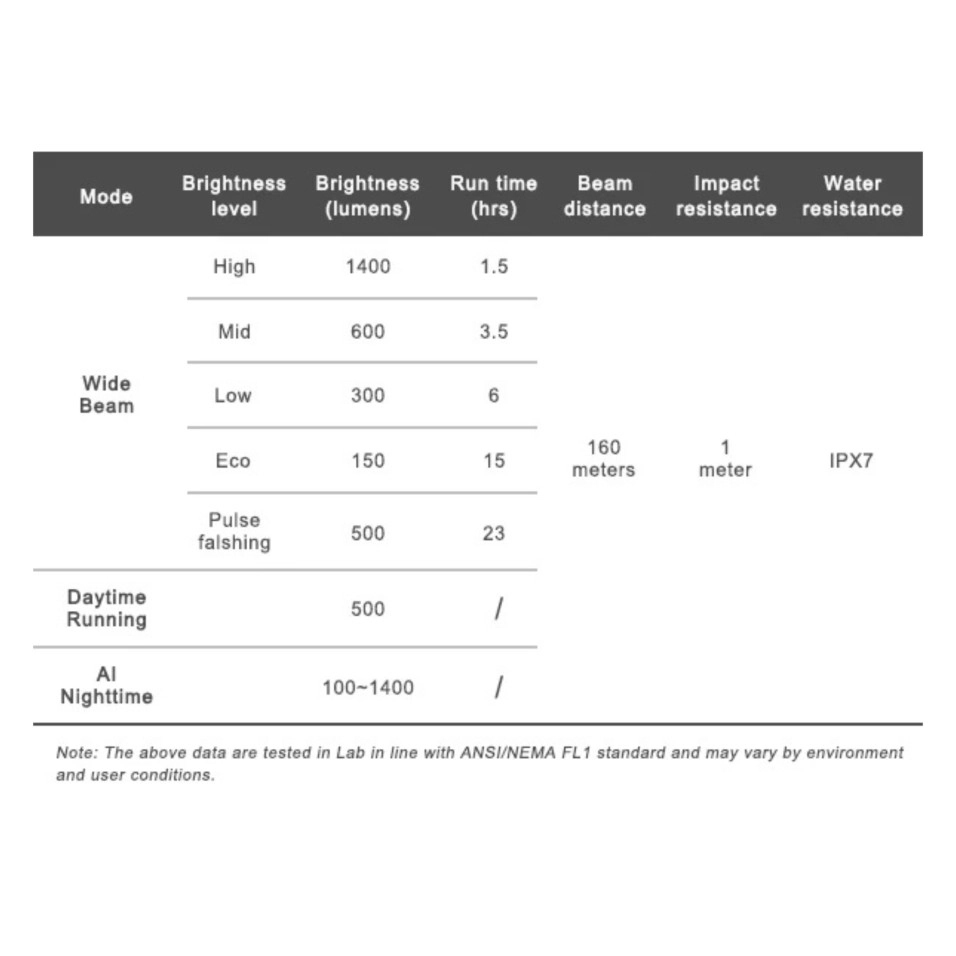La Llum Davantera Ravemen K1400 destaca pel seu exclusiu mode de conducció nocturna AI allibera les teves mans, ajustant automàticament la brillantor segons els teus hàbits de ciclisme, maximitzant la durada de la bateria per a una conducció sense preocupacions. També pot funcionar com un banc denergia, amb una interfície USB tipus C tot en uno per carregar i descarregar. I està construït per suportar qualsevol clima o desafiament de conducció, compatible amb qualsevol estil de muntura que prefereixi. Experimenti l'última il·luminació de ciclisme!