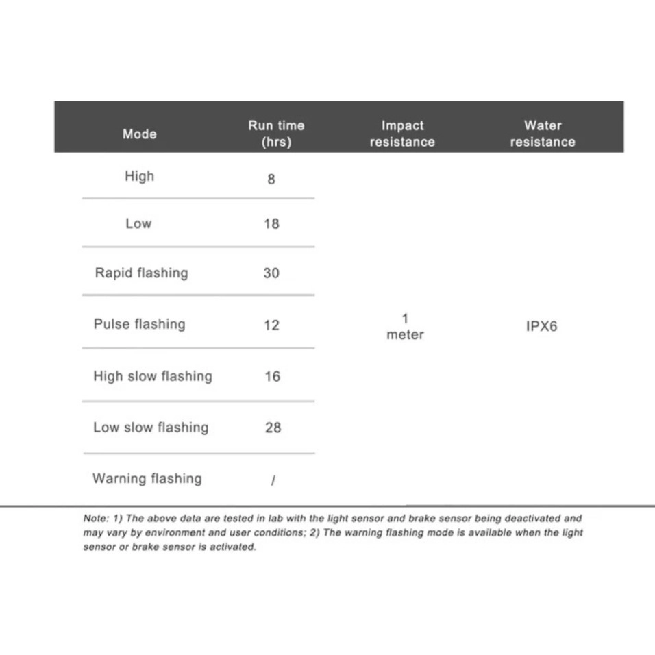 Característiques: Quatre conjunts de LED COB altament eficients i diverses maneres: En disposar el LED COB en forma transversal, el CL06 proporciona una àrea d'il·luminació més àmplia i més visibilitat per als conductors. Aquest disseny també permet crear més combinacions de modes dintermitència per a diverses necessitats. Sensors de llum i fre incorporats: En detectar la frenada o els fars (> 50 lux) dels vehicles que s'aproximen per darrere, el sensor de fre o llum activarà la cridanera manera intermitent d'advertència amb un màxim de 50 lúmens per augmentar la visibilitat del conductor al màxim. Clip de muntatge fàcil d'usar: Feu lliscar la llum cap a dins o cap a fora del muntatge fàcilment; També es pot retallar algunes bosses de selló compatibles (corretja de muntatge de 1,2-1,5 cm recomanada) o motxilles directament Suport de corretja de goma flexible: Disseny integrat d'una sola peça amb gran compatibilitat amb tiges de selló rodones i aerodinàmiques. També es pot muntar a certs cascos. Port de càrrega USB-C: Connector reversible per carregar la llum fàcilment i sense necessitat de voltejar buscant l'orientació correcta Bateria: bateria recarregable de polímer de liti de 500 mAh/3,7 V Dimensions (unitat de llum): 43 mm (L)*22,5 mm (ample)*44 mm (alt) Pes (unitat lleugera): 31g Grandària de muntatge: compatible amb tija de selló rodona de φ 24-36 mm i tija de selló aerodinàmica |