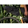 Las corretges de Hypalon reblades i un canal d'estabilitat que s'adapta a la tija del selló treballen junts per garantir una subjecció sense balanceig i un emmagatzematge segur sota el selló amb capacitat flexible per adaptar-se tant a viatges llargs com a aventures més curtes. La Bossa Sillin Apidura Expedition Saddle Pack (13L) compta amb un suport del darrere integrat de tres puntes per a una fixació directa i gràfics reflectants per a una major visibilitat. S'ha prioritzat la capacitat d'emmagatzematge amb butxaques laterals de malla per a ampolles, mentre que el compartiment de compressió de Hypalon és perfecte per a articles humits o calçat, mantenint la càrrega interna compacta i segura. – Construcció duradora - Vàlvules d'aire SoftVent – Capacitat flexible – Fixació estable – Impermeabilització mitjançant soldadura de costura Materials i tecnologia Teixit de grau expedició: