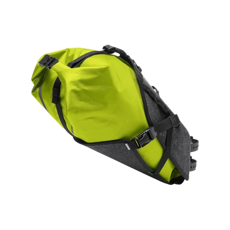 El volum de 10 litres de fàcil accés amb tancament de rotllo de la Bossa Sillin Vaude Trailsaddle II és perfecte per a la pràctica del bikepacking . El seu sistema de muntatge té un disseny prim, ajuda a la bossa a mantenir la seva forma i serveix com a protecció contra las esquitxades per mantenir sec també. A la corretja superior es pot subjectar un impermeable o una llanterna per tenir un accés ràpid. El suport de muntatge es fixa a la tija del selló i es manté en la seva posició amb una sivella de bloqueig que passa a través dels tirants del selló .