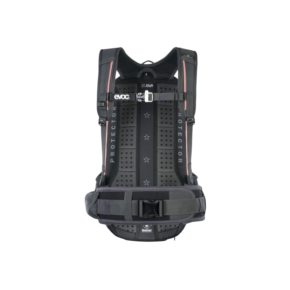 PROTECTOR DE LLENAESQUENA LITESHIELD El protector dorsal EVOC LITESHIELD combina la màxima protecció contra caigudes i una construcció lleugera com una ploma, molt eficaç i amb una gran flexibilitat. Al mateix temps, és completament impermeable a la temperatura. Al igual que la majoria dels fabricants de cascos esportius, utilitzem una estructura d'EPS, encara que la nostra està específicament adaptada als requisits de protecció de l'esquena mitjançant un enfocament segmentat i multicapa. A més de les seves excel·lents propietats d'absorció d'impactes, aquest concepte de protecció permet identificar immediatament els danys per caigudes, de manera que el protector es pot substituir individualment SISTEMA LITESHIELD El component central del sistema de motxilla protectora és la cintura de neoprè extra ampla i ergonòmica amb tancament de velcro i una gran hebilla resistents. Aquest sistema transfereix la càrrega principal a les malles. Al mateix temps, les tires de tall ergonòmic mantenen la motxilla còmodament en la posició predefinida per garantir una protecció perfecta de l'esquena. PORTA CLAUS Mosquetó per subjectar les claus SILBIDOR DE SENYALS Silbador de senyals COMPARTIMENT D'EINES Compartiment d'eines COMPARTIMENT DEL SISTEMA D'HIDRATACIÓ Compartiment per a la bossa d'hidratació de fins a 3L SISTEMA DE CREMALLERA DE 2 PASSES La construcció de la cremallera 2-STEP-ZIP SYSTEM permet accedir al compartiment principal de la motxilla de dues formes: L'obertura completa del compartiment principal et permet accedir sense restriccions a tot el contingut. La versió de càrrega superior és molt pràctica quan estàs de viatge. BOLSILLO PER A MÒBIL Compartiment per a telèfon BOLSILLO PER A ULLERES DE SOL Compartiment per a ulleres òptiques BOLSILLOS PER AL CINTURÓ Bolsillos al cinturó TRANSPORT DE L'EQUIP DE PROTECCIÓ Fixació del protector CLIP PER A RETROIL·LUMINACIÓ Llaç per fixar una llum de bicicleta. |