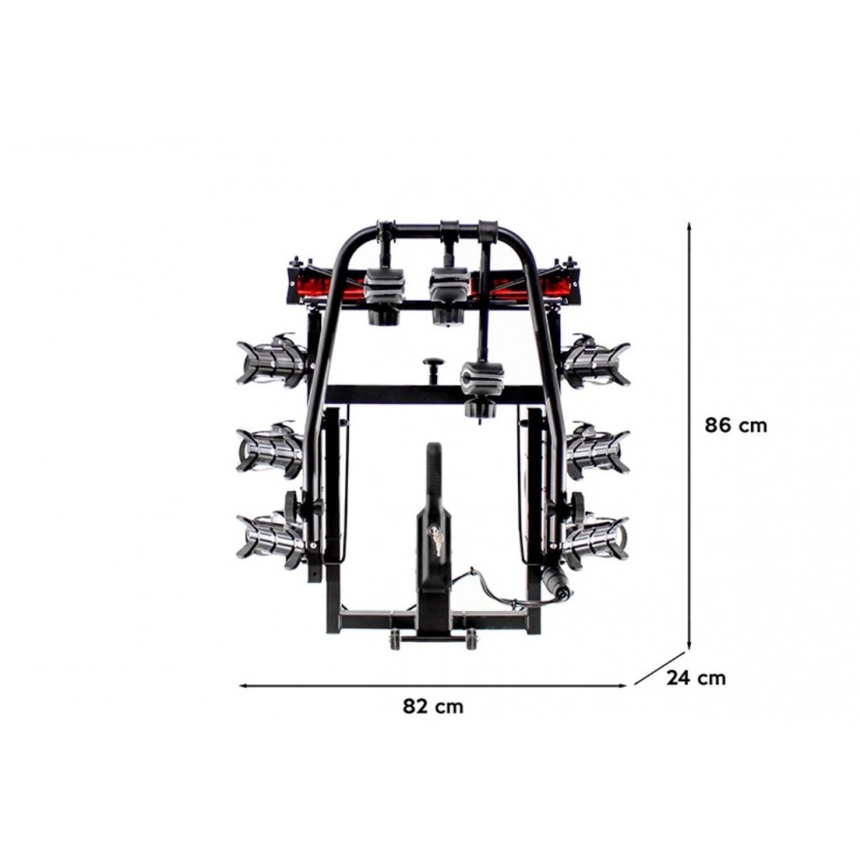 Característiques: - Transporta 2 bicicletes - Ràpida i fàcil instal·lació - Panys per a portabicicletes i bicicletes - Abatible per a accés al maleter - Portabicicletes amb rodes per a fàcil maneig - Emmagatzematge en posició vertical per optimitzar espai Informació Tècnica: - Grup òptic complet (endoll de 13 pins) - Càrrega màxima de 60 kg - Pes propi: 18,5 kg - Compatible amb bicicletes fins a 125cm de distància entre eixos - Compatible amb pneumàtics fins a 3.0 - Per a tots els quadres de tub rodó fins a 80 mm o tub oval fins a 80 x 55 mm - H x L x P (Plegat): 86 x 82 x 24 cm - H x L x P (Obert): 70 x 100 x 77 cm - Certificacions TUV i City Crash |