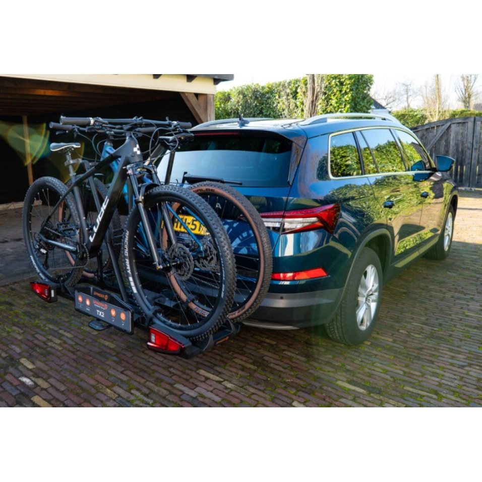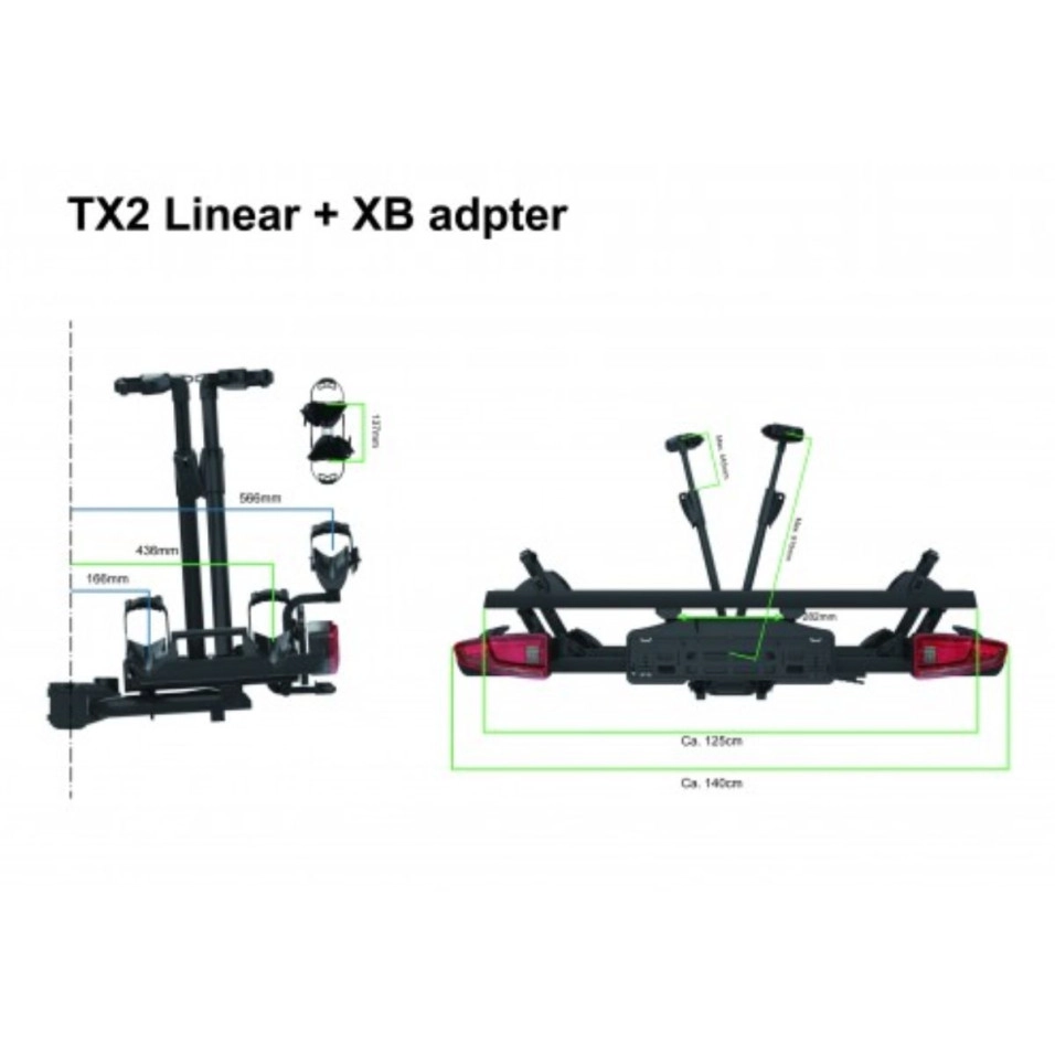 El Spinder TX2 Led arriba amb una important evolució respecte a la versió anterior, incorporant millores clau en xassís, sistema de fixació i facilitat d'ús , pensades especialment per al transport segur de bicicletes modernes ie-bikes. Per a 2 bicis (possibilitat d'ampliar a 3) abatible i plegable, perfecte per a tot tipus de bicicletes, especialment per a elèctriques, assistides, descens, carretera,... Permet rodes de fins a 3,25”.