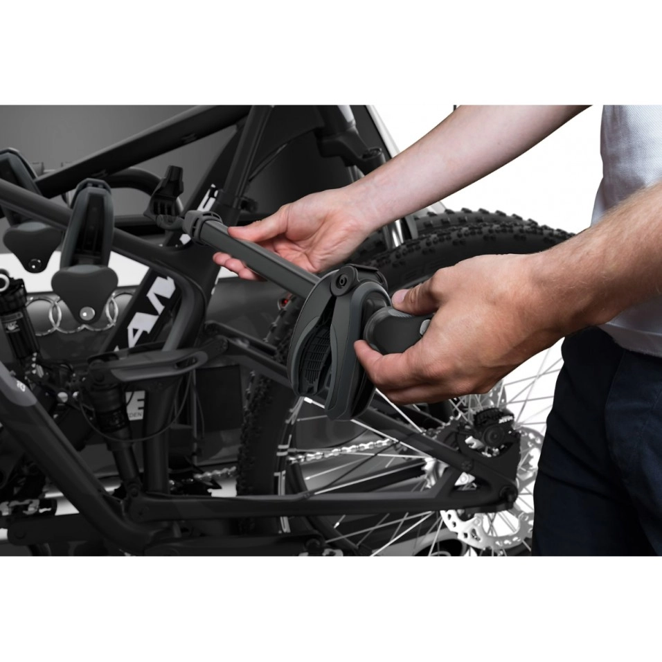 El Portabicicletes Thule EasyFold XT 3 Bicis 13Pins és un portabicicletes per a bola de remolc totalment plegable, compacte i fàcil d'usar, per a tot tipus de bicicletes.