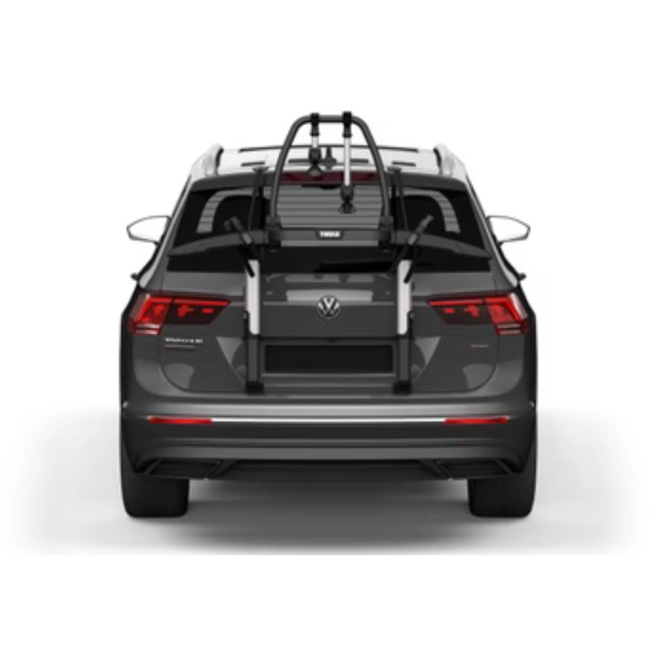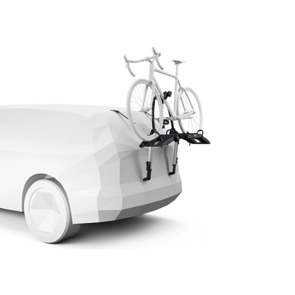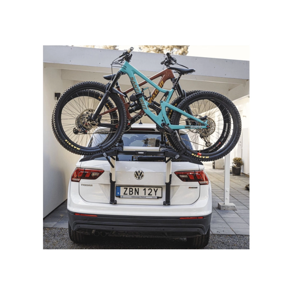 Suport per a bicicletes per a maleter amb plataforma elevada per partir amb tranquil·litat que manté els llums del darrere i la matrícula visibles. S´adapta al màxim als vehicles, inclosos els que tenen aleró, amb un disseny ajustable per adaptar-se a berlines, familiars, CUV i SUV. Màxima seguretat de subjecció al vehicle amb cables d'acer Muntatge ràpid i senzill al vehicle gràcies a una interfície d'usuari simple i un sistema de collament amb limitació de parell intuïtiu Subjecció ferma del suport i protecció del vehicle amb connexió de doble ganxo i coixinets de protecció de goma Muntatge senzill de les bicicletes mitjançant els braços de bicicleta ajustables/desmuntables i els poms del limitador de collament Thule AcuTight que fan clic quan s'aconsegueix el collament òptim S'ajusta a bicicletes amb una distància entre eixos de fins a 127 cm/50" Rodes fàcils de fixar gràcies a les corretges llargues amb sivelles d'obertura ràpida Bloqueja les bicicletes al portabicicletes i aquest al vehicle (panys inclosos) Es plega i queda pla per a un emmagatzematge i un transport senzills Es pot obrir el maleter del vehicle sense bicicletes muntades Els nostres panys i el nostre sistema amb pany redueixen el risc de robatori, però no garanteixen que es pugui evitar el risc de robatori del producte Aquest producte no té un ajustament universal. Utilitzeu la Guia del comprador de Thule per obtenir informació relacionada amb models específics d'automòbils |