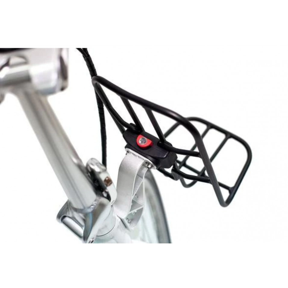 El Portaequipatges Tern Kanga Rack Davantera C/Correa està dissenyat per portar les teves coses: la motxilla, la bossa de l'ordinador portàtil o la bossa de la compra. KlickFix™ té un enginyós sistema de corretges que s'adapten a qualsevol tipus de bosses o paquets de tota mena i mida. La graella Kanga va subjecte directament al quadre perquè no afecti la direcció com passa amb algunes bosses o cistelles que es pengen del manillar. Quan no és necessari el Kanga se separa amb un simple clic.