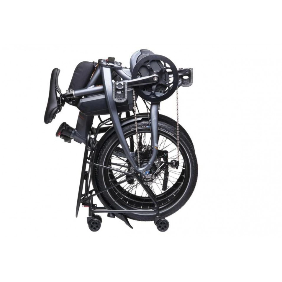 El Portaequipatges Tern Rapid Transit Rack (L) facilita anar a la feina en bici resolent la dificultat més gran quan la bici està plegada: portar-la amb tu pels passadissos de l'estació. Plega la teva bici en segons, cobreix-la i empeny-la sense esforç. El transport multimodal serà ràpid i senzill.