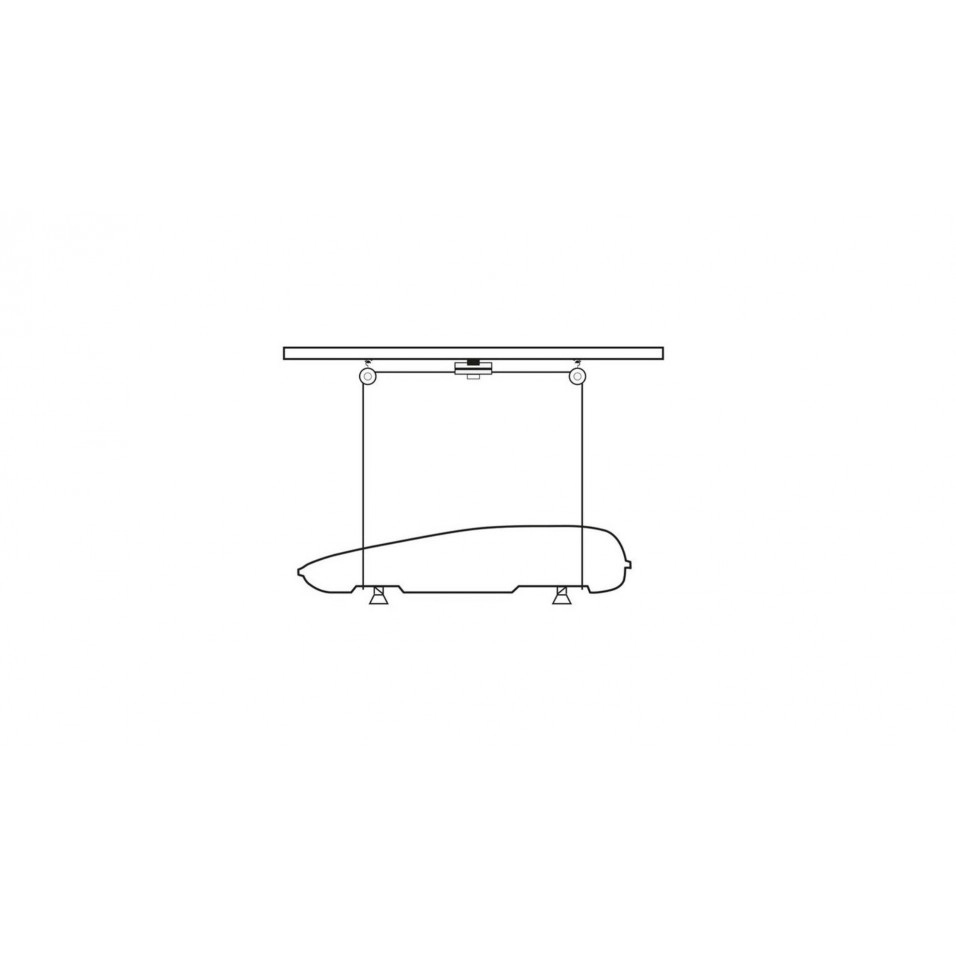 El sistema Elevador Cruz Lift és ideal per emmagatzemar cofres de sostre (fins i tot incloent barres), canoes, caiacs, taules de surf, etc