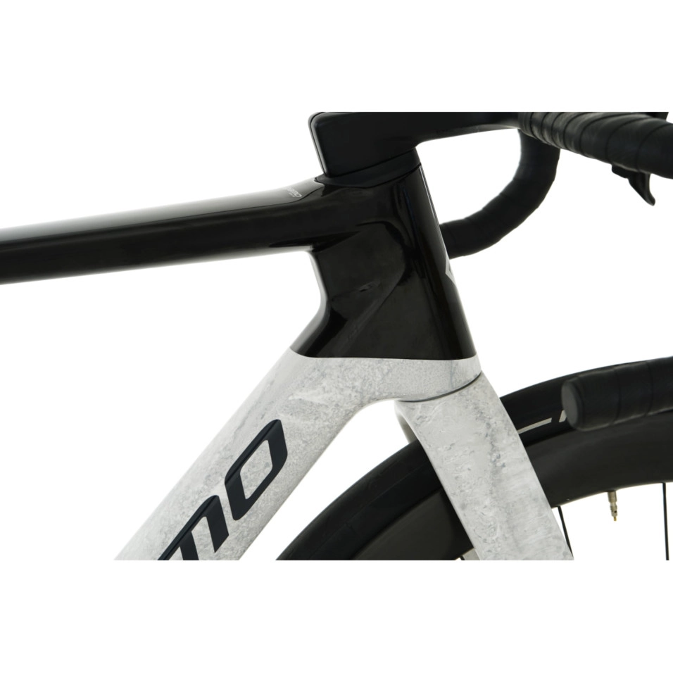 La nova Megamo PULSE porta l'aerodinàmica a un nivell superior. Gràcies a un disseny optimitzat que redueix la resistència a l'aire, hem aconseguit millorar el coeficient de resistència aerodinàmica (Cd) en un 6.1% en comparació de la seva predecessora. Aquest avenç significa que, a 40 km/h, el ciclista mitjà experimentarà una reducció de 12.5 watts, cosa que es tradueix en més velocitat amb menys esforç. MILLOR Una bicicleta que no només redueix significativament l'esforç necessari per mantenir altes velocitats, sinó que també maximitza l'estabilitat en condicions de vent creuat, fent que la PULSE sigui una referència en termes de velocitat aerodinàmica. Cada angle, cada vora i cada component ha estat optimitzat per assegurar que sigui la bicicleta més ràpida a la seva categoria. CABLEJAT INTERN PER A UNA ESTÈTICA NETEJA Tot el cablejat de la PULSE està completament ocult dins del quadre, cosa que dóna a la bicicleta una aparença moderna i minimalista. Aquest disseny no només millora l'estètica, sinó que també redueix la fricció i l'arrossegament aerodinàmic, optimitzant-ne el rendiment general. FORQUILLA AERODINÀMICA INTEGRADA TIULA DE SELLÓ AERODINÀMICA I RÍGIDA COCKPIT INTEGRAT I EFICIENT CARACTERÍSTIQUES PRINCIPALS · Quadre Pulse Carbon Advanced Composite Super Light Race UCI amb cablejat totalment intern |
