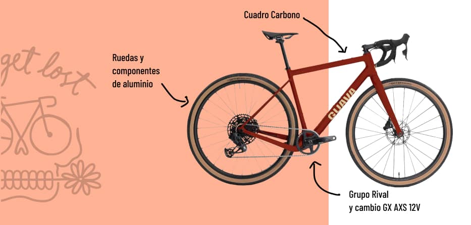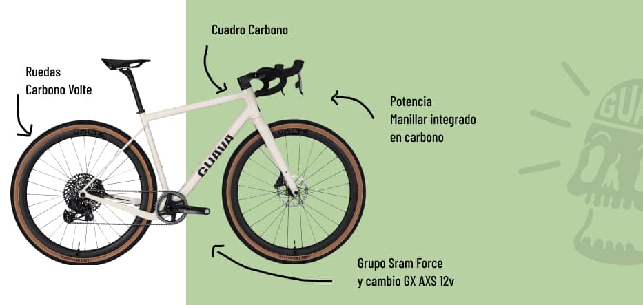 Aquesta versió de l'Espot incorpora components SRAM Rival AXS amb un desenvolupament de casset Eagle per a anar a qualsevol part. Geometria Guava, ràpida i divertida, àgil i estable en els descensos.