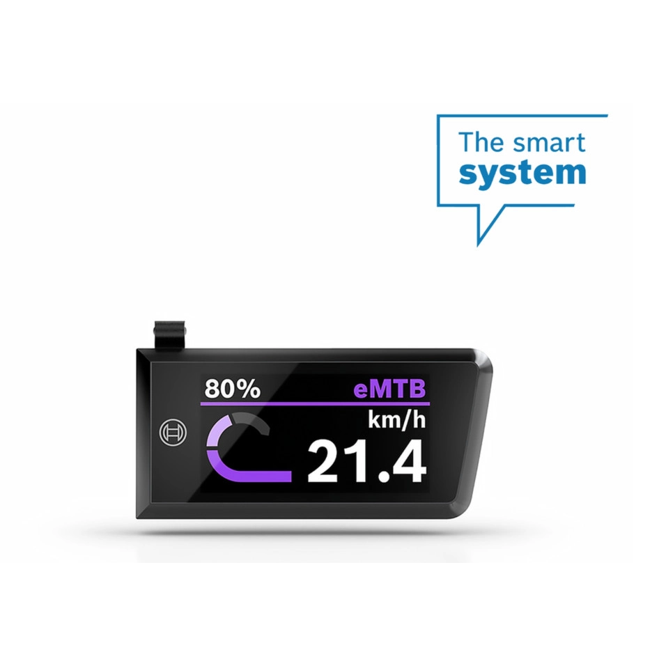 Dades de maquinari Display TFT transmissiu de 1,6 polzades (320 x 160 píxels) Protecció IP55 davant de pols i aigua a pressió Col·locació al triangle del manillar per protegir el display Maneig mitjançant LED Remote o Mini Remote (en combinació amb el System Controller) Senyals acústics per a indicacions del sistema Dades de connectivitat Registre d'activitats amb LED Remote, System Controller i l'aplicació eBike Flow Resum de l'autonomia restant en funció dels diferents modes de conducció Avisos si l'estat de càrrega del telèfon baixa per sota del 30% Individualització de la barra d'estat (visualització de l'estat de càrrega, hora o velocitat actual) Actualitzacions de programari mitjançant l'aplicació eBike Flow Altres funcions: Recomanació de canvi de marxa, visualització de dades de fitness i de conducció, visualització quan s'activen l'ajuda d'empenta i la llum |