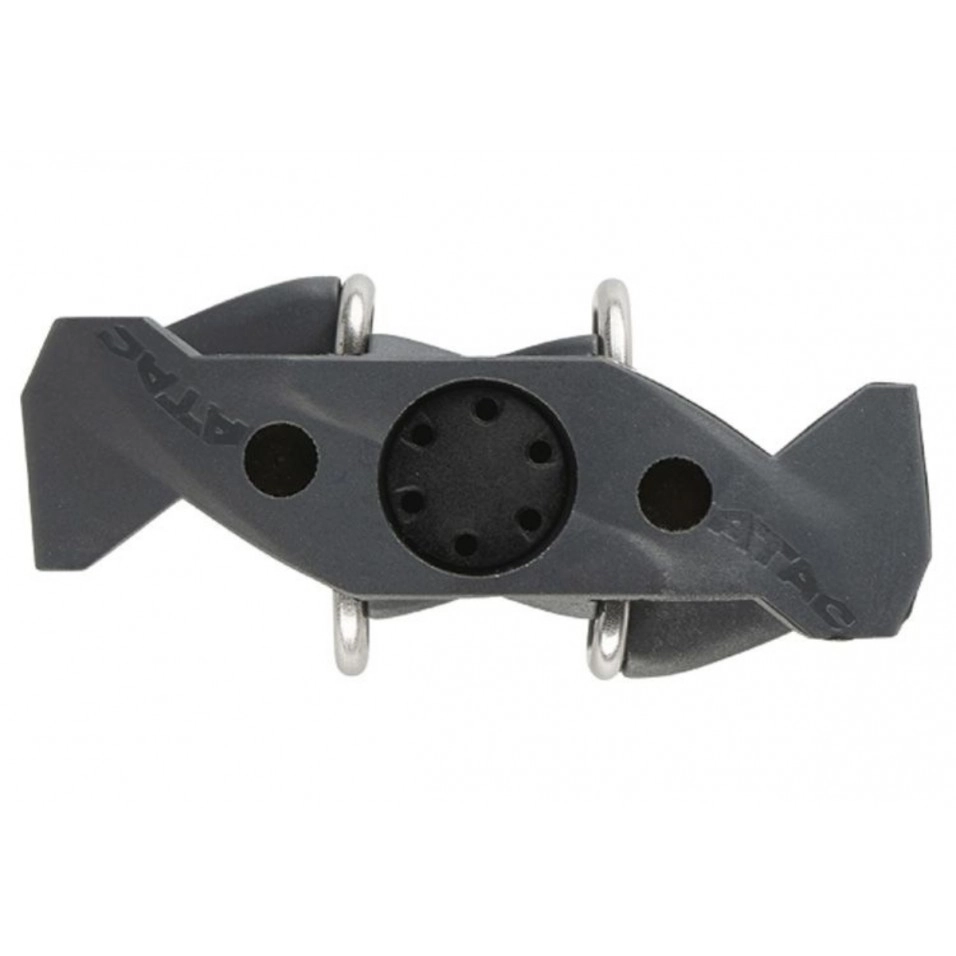 CARACTERÍSTIQUES - Eix d'acer cromat i cos de composite Sistema ATAC (facilitat de calçat i descalçat - Excel·lent neteja gràcies al concepte autonetejador - Llibertat angular (5º) i lateral (6 mm) - Pes: 406 gr/parell |