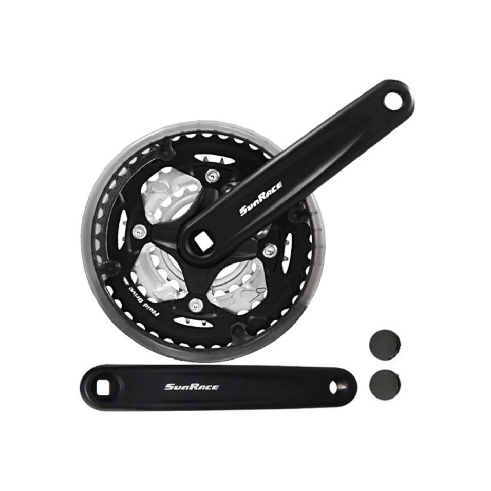 A Escapa trobareu una gran varietat d'accessoris i complements per a la vostra transmissió. Las Bieles Sunrace 3 plats 152x24/34/42 7/8V amb anell protector de cadena, ofereix una eficiència de transmissió fiable i garanteix un ritme òptim.
