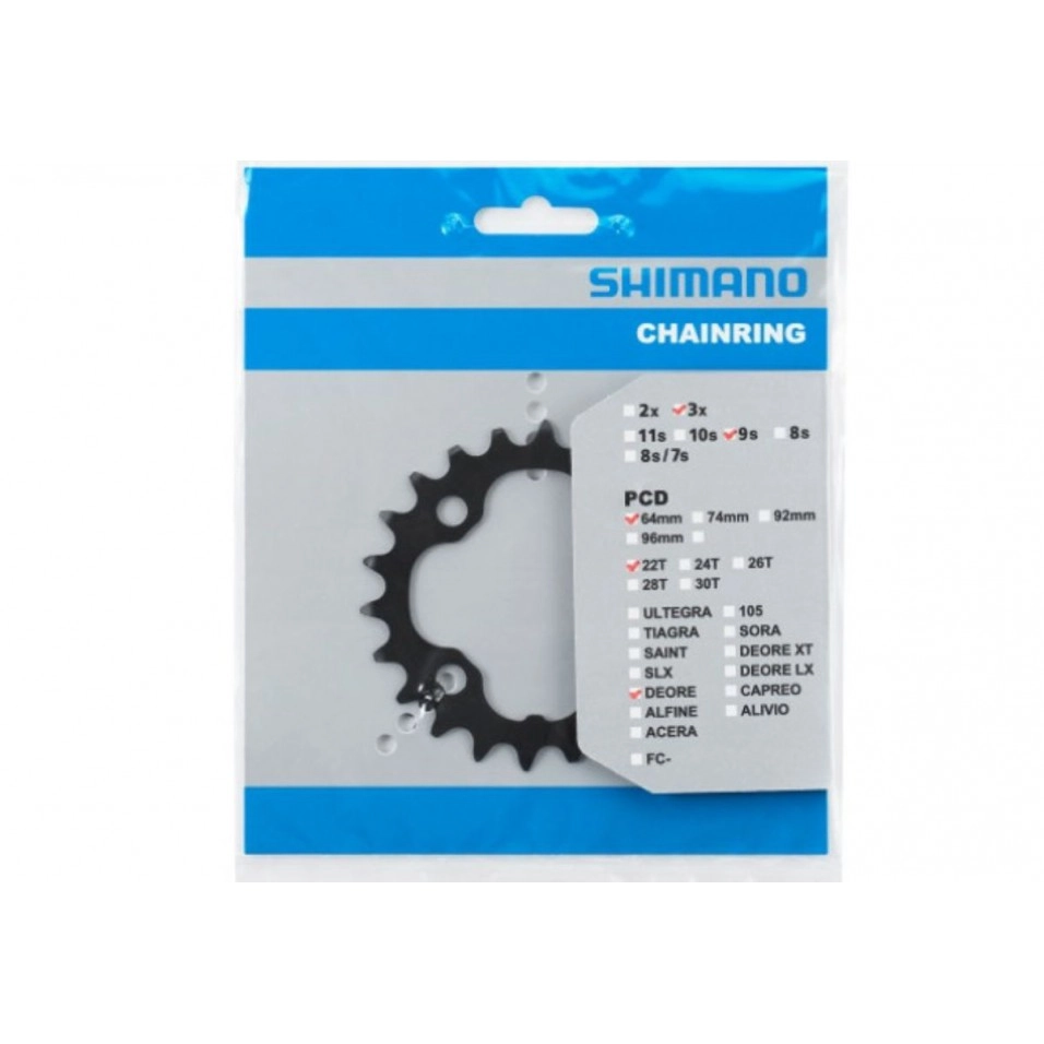 Plat petit Shimano Deore FC-M590 per las bieles de MTB Shimano Deore M-590 de triple plat i 9 velocitats. Compatible amb altres models de bieles Shimano Deore anteriors amb braços de 4 cargols. Plat en acer amb acabat negre. Diàmetre BCD: 64 mm. Subjecció amb quatre cargols. |