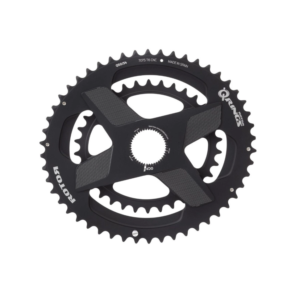 Fabricats amb alumini CNC de màxima qualitat i amb el sistema Direct Mount, ofereix una integració perfecta amb las bieles ROTOR ALDHU, ALDHU Carbon, VEGAST i 2INpower DM Road, reduint pes i millorant la rigidesa del conjunt. Disseny Q‑Rings Oval: