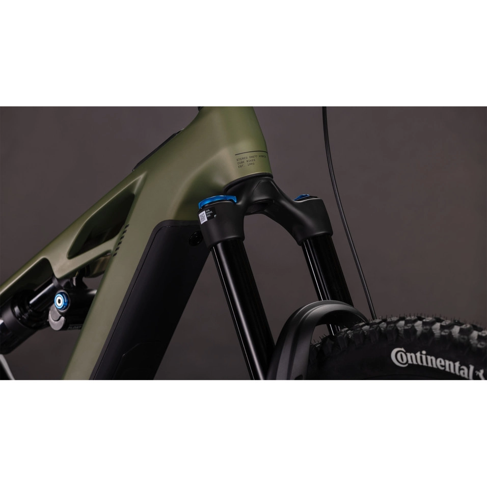A Escapa estem segurs que tenim l'ebike de muntanya dels teus somnis, per això et presentem la Bicicleta Cube Stereo Hybrid ONE77 HPC TM 800 2026, una bici força especial. Per començar, vam decidir canalitzar la potència del motor Bosch CX i la bateria PowerTube de 800 Wh a través dels canvis GX Eagle Transmission 1x12 de Sram amb una biela de carboni ACID per a una còmoda selecció de la relació de marxes i una increïble precisió electrònica, mentre que el controlador Kiox 400c et mostra exactament. A continuació, triem una forquilla Fox Float 38 Performance i la combinem amb un amortidor Float X2 Performance . Junts, proporcionen 170 mm de recorregut (amb moltes opcions d'ajust) per ajudar a mantenir la goma enganxada a terra. Parlant de gomes, el joc de rodes mullet Newmen Beskar 30 està calçat amb els adherents pneumàtics Continental Argotal i Kryptotal de 2,4 polzades. Un gran punt a favor seu, perquè tota aquesta tracció ajuda que els potents frens de disc hidràulics Sram Maven Bronze facin correctament la seva feina. En combinació amb una tija de selló telescòpica amb control remot, ja tens tot el necessari per lluitar contra la gravetat i arribar a dalt de tot.