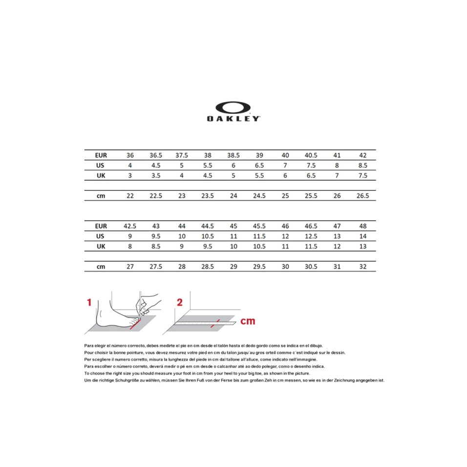 Ens hem associat amb la tecnologia BOA® per crear aquesta sabatilla lleugera i superresistent. El sistema BOA® Fit System proporciona un ajustament de precisió microadherent, dissenyat per rendir en les condicions més dures. L'elevada sola de goma SUPtraction ofereix tracció sobre la bici i fora, mentre que la part superior de barreja de niló manté els peus frescos i còmodes. Per acabar, no hem deixat de banda la protecció dels peus: hem reforçat la puntera i el taló perquè no et sorprengui el camí. característiques addicionals - L'esfera BOA® Li2, amb microajustament incremental i un elegant disseny lleuger, és la solució definitiva amb una durabilitat sense precedents - Part superior de malla transpirable sense costures per ajudar a mantenir els peus frescos - Llengüeta i tancament asimètrics per evitar l'entrada de brutícia no desitjada - Puntera i talonera reforçades per a més durabilitat - Sola SUPTraction per a una activitat versàtil fora de la bicicleta - Pantalla d'abrasió Rock ink per a més protecció i durabilitat - Logotip Oakley Ellipse a la pala - Logotip Oakley Bark al taló Composició del material - Exterior: 72% niló, 8% polièster, 10% poliuretà - Folre: 100% malla |