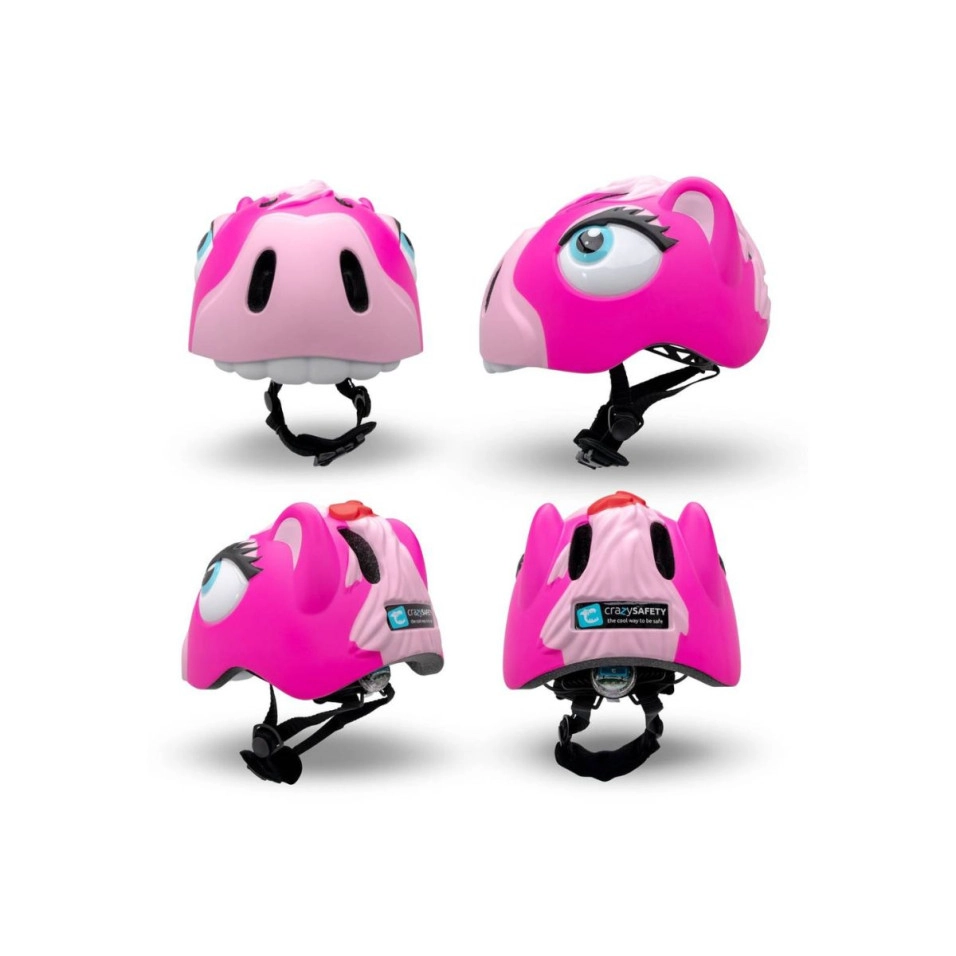 El Casc Crazy Safety Poni és adequat per a nens de 2 a 7 anys. Tots els cascos Crazy Safety estan fabricats amb escuma EPS lleugera d´alta qualitat. Grandària ajustable amb el sistema d'ajust intern que canvia la mida del casc de 49cm a 55cm. La llum LED vermella de seguretat amb 3 funcions està incorporada al sistema d'ajust intern amb una roda giratòria, i la pila és fàcil de canviar. 6 grans orificis de ventilació a la part davantera, superior i posterior proporcionen un bon flux daire. Tots els cascos Crazy Safety vénen amb una llum, un coixinet protector per a la barbeta, les corretges de color a joc i coixinets interiors extraïbles i rentables. El Casc Crazy Safety Poni és ideal per anar amb bicicleta, monopatí, patinet, bici d'equilibri i patins.