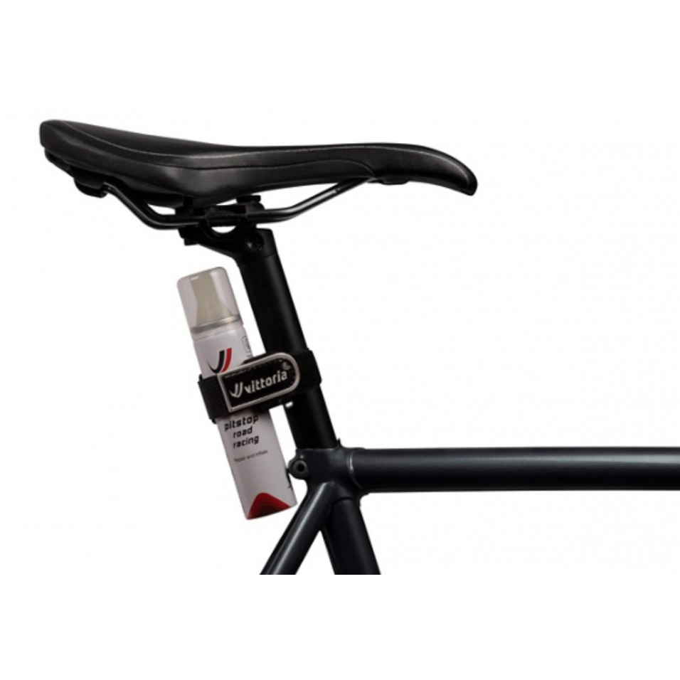 El Kit Spray Vittoria Antipunxades Pit Stop Road Racing reinfla el pneumàtic instantàniament alhora que tapa petits porus i forats. I és molt com portar amb el suport per a la tija del selló.