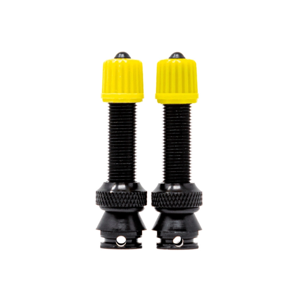 2 vàlvules gruixudes o Schrader, tubeless, d'alumini anoditzat negre, compatibles amb mousse, desmuntables, amb taps grocs X-Sauce, junta cònica de goma X-Sauce reemplaçable i tuerca d'alumini amb junta de goma o-ring + tap de rosca per muntar i desmuntar l'obús de la vàlvula. Fabricades sota un elevat estàndard de qualitat, partint d'un tub d'alumini massís i no buit per obtenir major duresa i resistència. Junta de goma exclusiva X-Sauce, reemplaçable. |