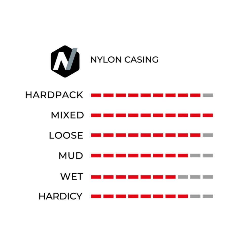 Ràpida, versàtil i fiable, la Coberta Vittoria Barzo 29 TLR està dissenyada perquè exploris els teus senders, independentment del tipus de terreny i les condicions. La Barzo prospera en condicions humides, seques i variables, i està preparada tant per a roques i arrels com per a sòls tous i argilosos o terrenys durs. Els tacs centrals alternats roden ràpid i els tacs d'estil moto als laterals mosseguen fort als revolts. Els tacs augmenten l'adherència sota càrregues laterals, ajudant a mantenir la velocitat en tot tipus de terrenys, i l'espaiosa col·locació dels tacs neteja el fang i els terres argilosos. Compost de grafè 1C Cautxú infós amb grafè per minimitzar la resistència al rodament i resistir les punxades. El grafè omple eficaçment els buits entre les molècules de cautxú, creant una estructura reforçada que és més lleugera, més eficient i també més duradora. Carcassa de 60TPI Dissenyades amb una construcció de niló 60-TPI que resisteix l'abrasió i les punxades alhora que manté la teva connexió amb el sender amb una flexibilitat de nivell mitjà. |