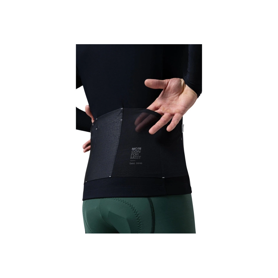 CONDICIONS ÒPTIMES D'ÚS Temperatures fresques, ideal per a estacions intermèdies com la primavera o la tardor on busquem una peça que ens proporcioni confort tèrmic sense ser excessiu, que sigui fàcil de combinar amb altres capes i que ofereixi una transpiració elevada per cobrir un rang de temperatura ampli si la temperatura millora. TECNOLOGIA El teixit sòlid de poliamida té una elasticitat i comoditat sense precedents, aconseguint una peça que s'ajusta perfectament a l'anatomia del ciclista, sense limitar els nostres moviments i permetent una senzilla combinació amb altres capes. El seu interior de microfleece té un estudiat gramatge per proporcionar un aïllament tèrmic mitjà que no penalitza la transpiració, i també contribueix les entrades d'aire dels seus panells mesh sota les aixelles. Obtenim un interior càlid sense excessos, amb un assecat ràpid que permet ampliar el rang tèrmic i gaudir d'una peça summament adaptable. Els punys de les mànigues reben un acabat en tall viu sense costures. Ara són més aerodinàmics, còmodes i fàcils dintroduir en uns guants o sota altres capes. La cremallera vista proporciona un aspecte visual dinàmic i presenta un logotip serigrafiat. Té una elasticitat perfecta per evitar la formació d'arrugues a l'abdomen, millorant l'estètica i aconseguint una millor adaptació i aerodinàmica. A la part del darrere s'instal·len 3 butxaques. 2 d'ells amb el nostre sistema patentat GRS ( Gobik Retention System) que evita la pèrdua de les nostres pertinences. El dret de reixeta, perfecte per evitar la condensació de la suor del nostre telèfon intel·ligent. S'hi afegeix una butxaca addicional de reixeta a la part lateral, perfecte per guardar productes de nutrició o els seus embolcalls. La cintura és nova, amb un acabat suau i molt elàstic que no oprimeix ni resta confort. La part frontal termosegellada aporta una estètica millorada. Detalls reflectors incrementen la visibilitat en condicions de poca llum. CARACTERÍSTIQUES Teixit sòlid amb microfleece. Panells mesh en aixelles per a ventilació extra. Punys de tall viu sense costures. Cremallera vista amb logo serigrafiat. 3 butxaques del darrere. Butxaca extra de reixeta lateral. Cintura suau i elàstica amb frontal termosegellat. Detalls reflectors. |