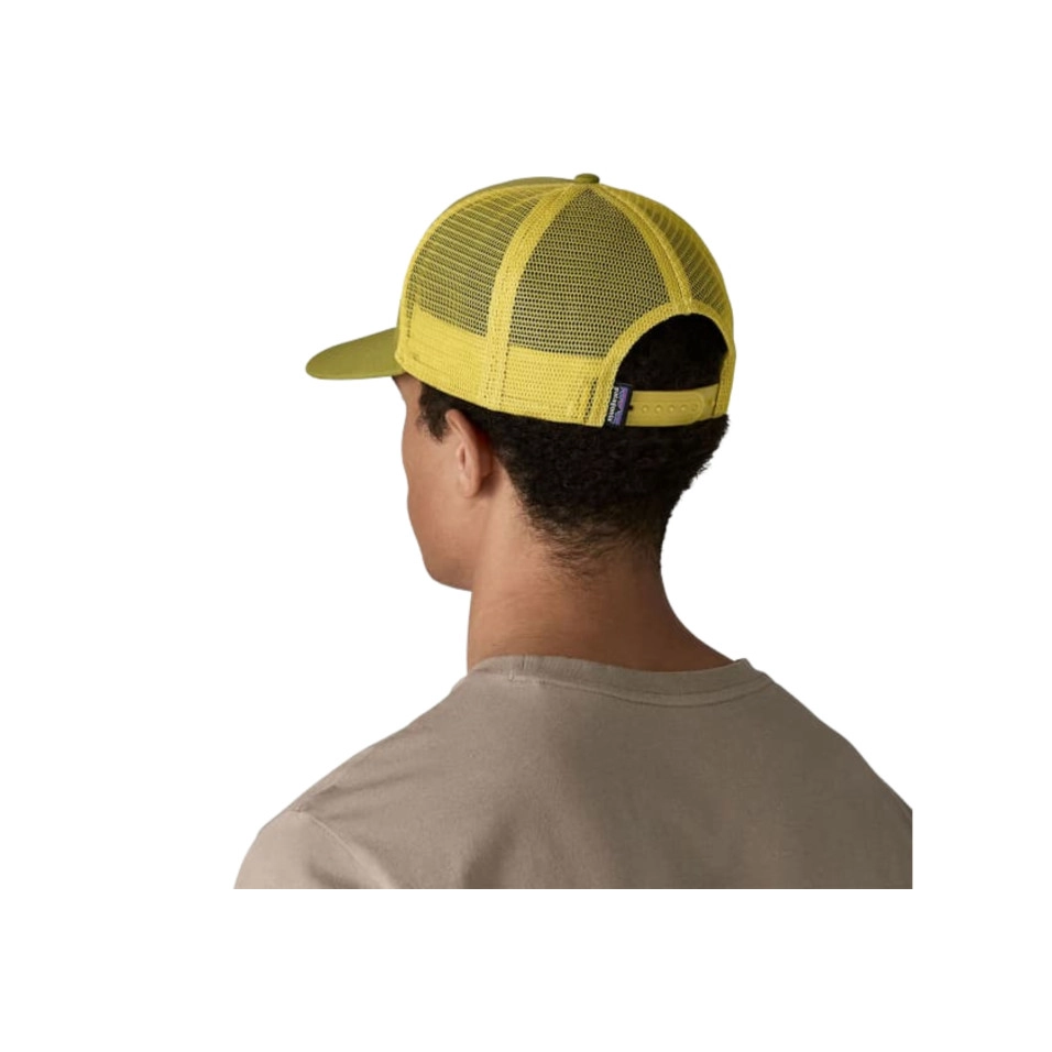 El Gorro Trucker Patagonia P-6 Logo que us presenta Escapa té una visera feta amb material NetPlus® totalment traçable de Bureo, feta amb xarxes de pesca 100% reciclades. Aquesta gorra clàssica d'estil camioner de corona mitjana amb corretja ajustable està feta de cotó orgànic a la part davantera i malla de polièster reciclat a la part posterior. Model fet en un taller de Comerç Just Certified™.