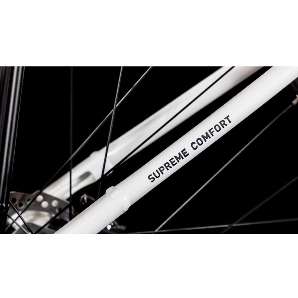 Damit Sie Ihre Routen bequem zurücklegen können, bietet Escapa mit dem Cube Supreme Hybrid Comfort ONE 500 Easy Entry 25 Bicycle ein Elektrofahrrad an, das ein komfortables und vielseitiges Fahrerlebnis bietet. Sein leichter Rahmen und die Easy-Entry-Geometrie sorgen für einen einfachen Einstieg und eine aufrechte Fahrposition.