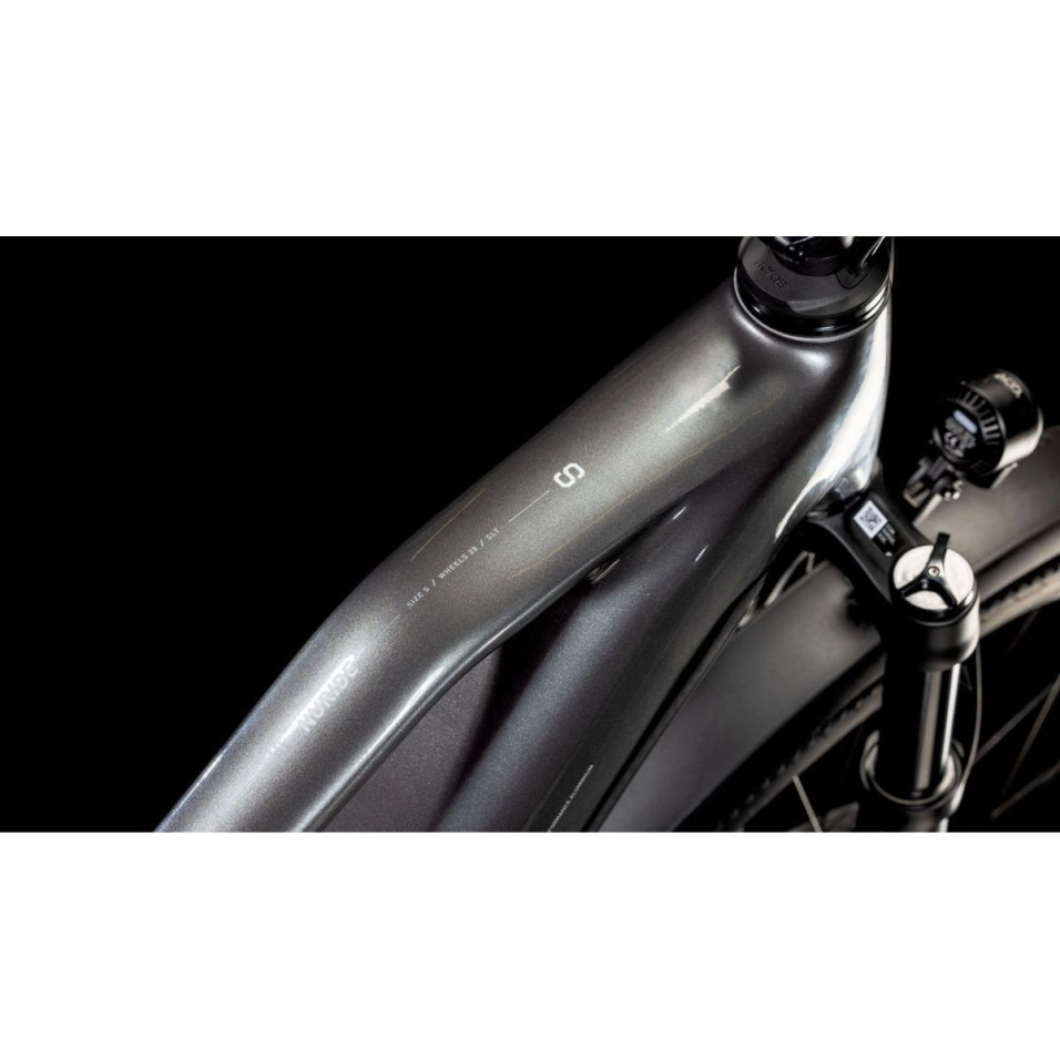 Das Cube Nuride Hybrid SLT 800 Allroad Trapeze 25 ist ein High-End-Elektro-Trekkingrad, das sowohl auf Stadt- als auch auf Landstraßen außergewöhnliche Leistung bietet. Eigenschaften: - Superlite Easy Entry-Aluminiumrahmen: Dieses Rahmen erleichtert den Auf- und Abbau und ist ideal für Benutzer unterschiedlicher Körpergröße. - Bosch Performance Line CX- Motor : Bietet kraftvolle und sanfte Unterstützung, ideal für die Überwindung von Steigungen und langen Fahrten, auch mit Last. - Bosch PowerTube 800-Akku: Mit einer Kapazität von 800 Wh bietet er eine außergewöhnliche Autonomie, sodass Sie längere Fahrten unternehmen können, ohne befürchten zu müssen, dass Ihnen die Energie ausgeht. - Fox 34 Float AWL- Gabel : Mit 100 mm Federweg absorbiert diese hochwertige Federgabel die Stöße des terreno und verbessert so Komfort und control . - Sram X0 Eagle AXS™ Getriebe : Dieses elektronische 12-Gang-Getriebe bietet präzises und zuverlässiges Schalten, selbst unter las Bedingungen. - Magura Gustav PRO Bremsen : Diese hydraulischen 4-Kolben- bremsen bieten außergewöhnliche Bremskraft in jeder Situation. Technologien: - Bosch Smart System : Integriert motor , Akku und display control bietet ein vernetztes und personalisiertes Fahrerlebnis. - Bosch Kiox 500- Display : Bietet detaillierte Informationen zur Reise, Navigation und Konnektivität mit Ihrem Smartphone. - Vollständige Batterieintegration: Die Batterie ist vollständig in den Rahmen integriert, was die Ästhetik und den Schutz verbessert. - Interne Kabelführung: Die Kabel sind vollständig im Rahmen verborgen, was die Reibung verringert, die Ästhetik verbessert und die Reinigung erleichtert. |