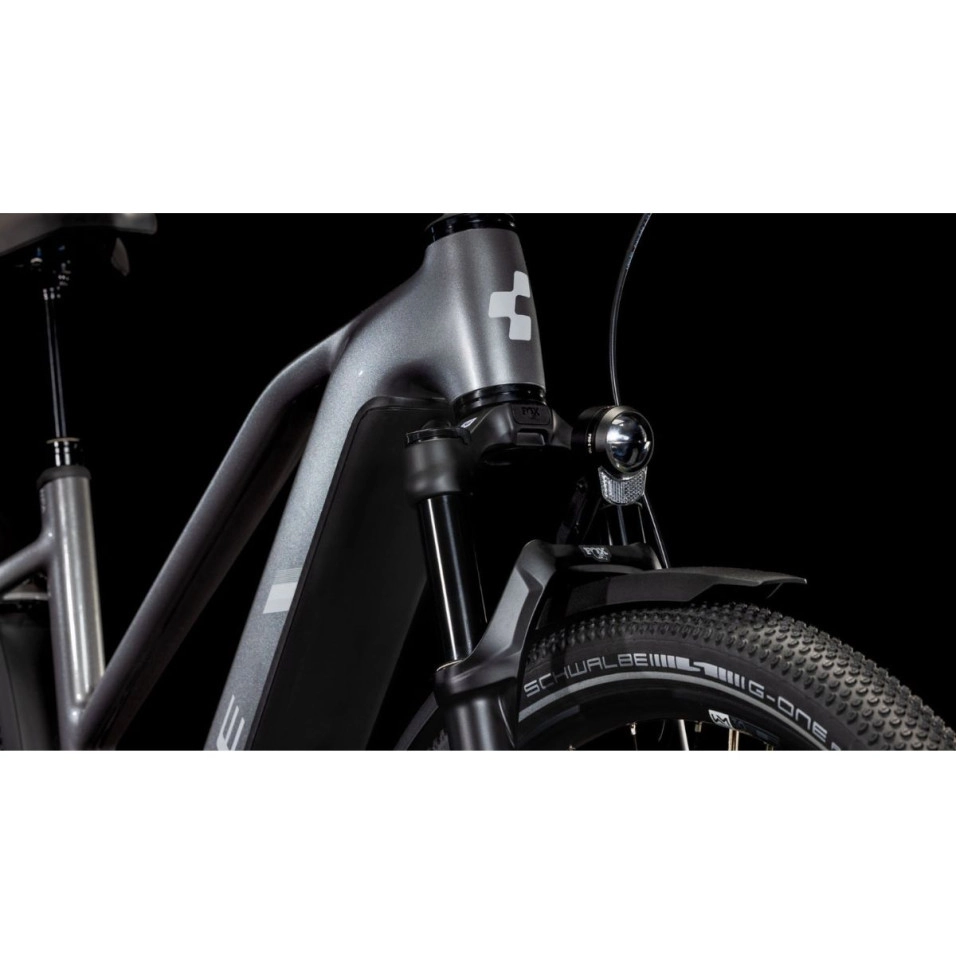 Für urbane Radfahrer bietet Escapa das Cube Nuride Hybrid SLT 800 Allroad Trapeze 25 Bicycle an, ein High-End-Trekking-E-Bike, das auf außergewöhnliche Leistung ausgelegt ist. Sein Trapeze Rahmen erleichtert den Zugang, während Komponenten wie der Bosch Performance Line CX motor , Bosch PowerTube 800-Akku, die Fox 34 Float AWL-Gabel und Sram X0 Eagle AXS™-Getriebe für ein reibungsloses und effizientes Fahrerlebnis in jedem terreno sorgen. Magura Gustav PRO bremsen vervollständigen dieses Set und bieten außergewöhnliche Bremskraft.