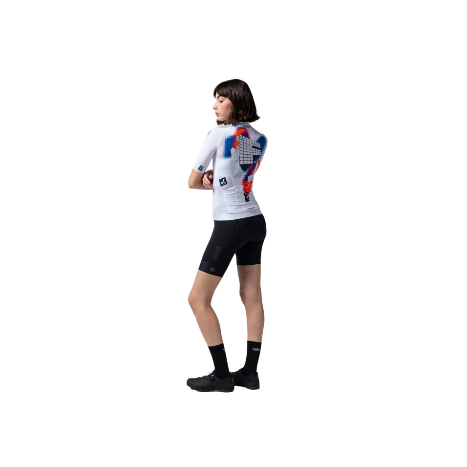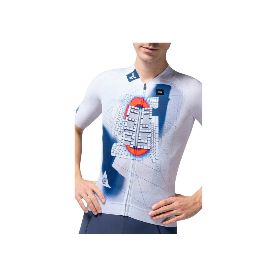 Das Gobik CX PRO 4.0 Factory Team 25-Trikot wird 2025 vom Gobik Factory Team getragen und ist dieses Jahr von J. Demsky signiert. Mit seiner charakteristischen neofuturistischen Bildsprache verbindet Demsky metaverse Einflüsse, retrofuturistische Ästhetik und urbane Wurzeln zu einer grafischen Erzählung, die über die Zeit hinausgeht. Geometrische Linien und lebendige Farben verwandeln die CX Pro 4.0-Modelle in Leinwände, die die Verbindung zwischen Kunst, Technologie und Geschwindigkeit zelebrieren.