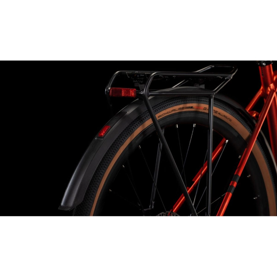 Das Cube Nulane Pro FE 25 ist ein Hybridfahrrad, das Komfort und Vielseitigkeit für Ihre täglichen Pendel- und Wochenendfahrten bietet. Es kombiniert Elemente von Straßen- und Mountainbikes und bietet ein reibungsloses und effizientes Fahrerlebnis. Eigenschaften: - Superlite-Aluminiumrahmen: Der doppelt konifizierte Rahmen ist leicht und stabil und bietet eine solide und langlebige Basis. - Vollcarbon- Gabel : Die Carbon-Gabel absorbiert las und verbessert so Komfort und control . - Shimano Cues 2x10 Getriebe : Dieses Getriebe bietet eine große Auswahl an Gängen zur Anpassung an verschiedene Gelände und Steigungen. - Hydraulische Bremsen : Hydraulische bremsen sorgen für zuverlässige Bremskraft bei jedem Wetter. - Schwalbe G-One Allround-Reifen: Diese vielseitigen Reifen bieten guten Grip sowohl auf Asphalt- als auch auf Schotterstraßen. - Im Lieferumfang enthaltenes Zubehör: Das Fahrrad ist mit Schutzblechen und Gepäckträger ausgestattet und somit ideal für den täglichen Gebrauch. Technologien: - Superlite Aluminium: Dieses hochwertige Aluminiummaterial ist leicht und stabil, was zum geringen Gewicht des Fahrrads beiträgt. - Carbon: Die Carbongabel ist leichter und steifer als eine Aluminiumgabel und verbessert so die Fahrqualität. - Komfortable Geometrie: Die Geometrie des Nulane Pro FE ist so konzipiert, dass sie eine aufrechte und bequeme Fahrposition bietet, ideal für lange Fahrten. - Interne Kabelführung: Die Kabel sind in den Rahmen integriert, was die Ästhetik verbessert und die Kabel vor Verschleiß schützt. Vorteile: - Vielseitigkeit: Perfekt für Stadtfahrten, Wochenendtouren und Spaziergänge auf Schotterstraßen. - Komfort: Die Carbongabel und die entspannte Geometrie tragen zu einer sanften und komfortablen Fahrt bei. - Leistung: Shimano Cues-Antrieb und hydraulische bremsen sorgen für zuverlässige Leistung. - Komplette Ausstattung: Die Schutzbleche und der Gepäckträger machen es alltagstauglich. |