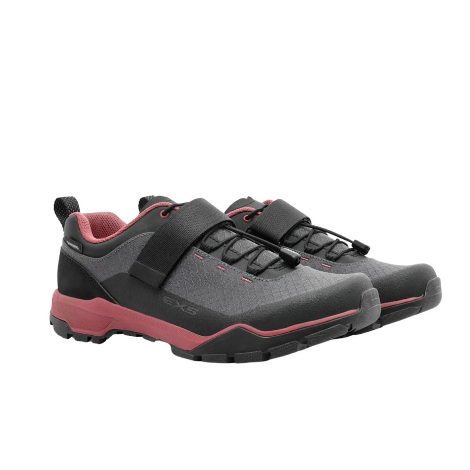 Leistung abseits des Fahrrads Geschicklichkeit beim Treten Eigenschaften - Der Shimano EX500W ist ein leichter, vielseitiger, frauenspezifischer Tourenschuh, der den Komfort und die Leistungsfähigkeit eines Wanderschuhs mit der hohen Leistung eines Clip-On-Mountainbikes kombiniert. - Überlegener Grip: Die patentierte ULTREAD EX-Gummisohle und das exklusive Profilmuster von Shimano sind für zuverlässigen Grip auf und abseits des Fahrrads optimiert. - Volume Tour Leisten: Diese schuhe wurden speziell für Frauen entwickelt und bieten optimales Volumen im Vorfußbereich, was eine komfortable Flexibilität beim Gehen oder Wandern ermöglicht und gleichzeitig die Sicherheit der Ferse für eine effiziente Trittleistung gewährleistet. - Stabile Pedalplattform: Die umweltfreundliche Zwischensohle aus recyceltem Nylon überträgt die Kraft effizient auf die Pedale, während eine durchgehende EVA-Zwischensohlendämpfung den Gehkomfort verbessert. - Leichte Leistung: Das leichte, atmungsaktive Mesh-Obermaterial sorgt für einen sicheren Sitz und erhöht die Luftzirkulation, damit Sie kühl und bequem bleiben. Die Schnellschnürung und der Ristriemen sind einfach zu bedienen und sorgen für eine präzise Passform. - Kompatibilität mit SPD-Stollen: Lässt sich an SPD-Pedalen befestigen und sorgt so für optimale Treteffizienz auf schwierigen Strecken. Die Schuhplattentasche befindet sich weiter hinten, was zu weniger Hotspots und weniger Kontakt mit der Schuhplatte beim Gehen führt. |