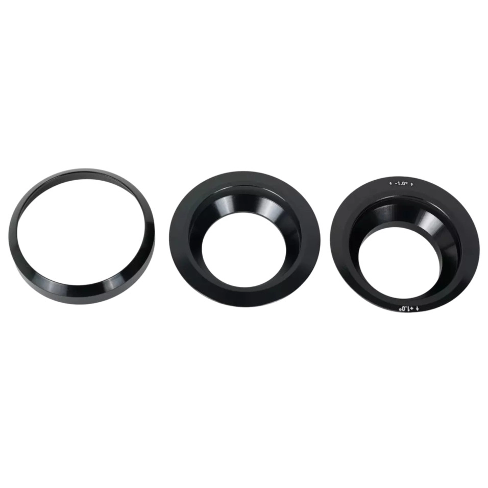 Verstellbarer Steuersatz-Buchsensatz für Gen.3 Levo , Gen.2 Levo SL und 2022 Stumpjumper EVO- Rahmen . Obere Steuersatzschale ohne Versatz für 1-1/8-Zoll-Lager (1 Einheit). Plus oder minus 1 Grad Winkeleinstellung der oberen Steuersatzschale für 1-1/8-Zoll-Lager (1 Stk.). Kugeladapter für 1,5" unteres Lager (1 Stk.) |