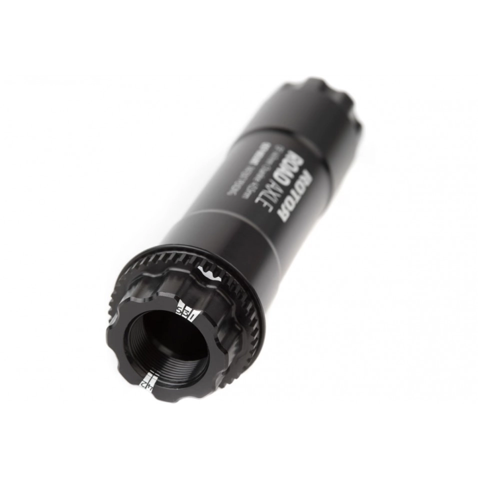 Solide. Hierbei handelt es sich um die Rotor Road Aldu / Vegast Offset Tretlagerachse , die eine außergewöhnliche Steifigkeit bietet, um Verluste bei der Kraftübertragung bei Verwendung mit Direct Mount-Kettenblättern und dem Spider für Vier-Loch-Kettenblätter zu vermeiden