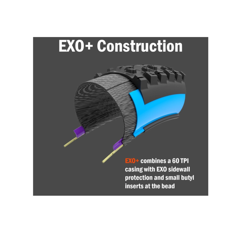 Der Maxxis Forekaster 27.5 3CT/EXO+/TR Reifen Der Reifen zielt direkt auf las Mountainbikes mit kurzem Federweg (100–130 mm) ab, auch bekannt als Downcountry-Segment. Der neue Forekaster (Markteinführung Juli 2022) ist als optimaler Reifen konzipiert: Er rollt schneller als ein Minion oder sogar ein Dissector , bietet aber in las , las und las Bremsen eine berechenbarere Traktion als der Aspen oder Rekon. 3C MaxxTerra Die 3C MaxxTerra-Gummimischung von Maxxis ist eine Dreifachmischung, die in unserer gesamten Mountainbike-Reifenpalette zum Einsatz kommt. Die 3C MaxxTerra-Mischung bietet mehr Traktion als die 3C MaxxSpeed-Mischung, aber gleichzeitig eine geringere Laufleistung und einen niedrigeren Rollwiderstand als die MaxxGrip-Mischung. Dadurch ist sie ideal für Trail-Fahrten unter allen las . EXO+ Technologie EXO+ ist Maxxis ' Pannenschutzoption mit mittlerem Schutzgrad, geeignet für Mountainbikes und leichte E-Bikes. Er besteht aus einer robusten 60-TPI-Karkasse, der legendären EXO-Pannenschutzschicht an den Seitenwänden und einem kleinen Butyl-Einsatz am Wulstkern. Die widerstandsfähige Karkasse und das EXO-Material schützen vor Beschädigungen durch Steine und Wurzeln, während der Butyl-Einsatz den Reifen vor Durchschlägen bewahrt und Felgenschäden vorbeugt. Tubeless Ready Maxxis Tubeless Ready (TR) Las bieten verbesserte Traktion, geringeren Rollwiderstand und weniger Pannen durch den Verzicht auf einen Schlauch. Verwenden Sie niedrigere Reifendrücke für mehr Grip und control . Achten Sie auf die „TR“-Kennzeichnung an der Seitenwand. |