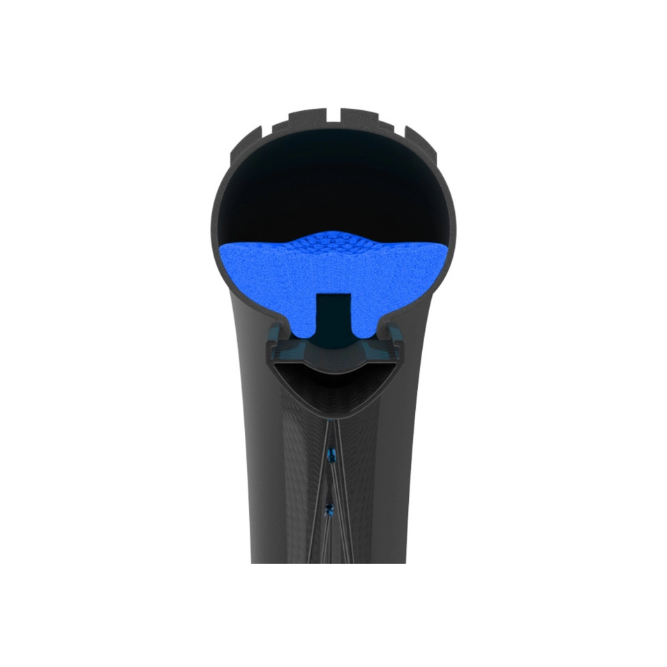 Die Seitenkanäle sind so geformt, dass sie einen Venturi-Effekt erzeugen, was bedeutet, dass die Geschwindigkeit des Luftstroms durch die Kanäle zunimmt, je kleiner die Kanäle sind. Dies ist das gleiche Prinzip wie der Bodeneffekt von Formel-1-Autos und ist notwendig, um die Luft von der Außenseite der Einlage nach innen, zwischen der Einlage und der Reifenbasis, zu beschleunigen. Die Luft wird im inneren Teil eingeschlossen und braucht viel länger, um zum äußeren Teil zurückzukehren, so dass im Moment des Aufpralls nur noch sehr wenig Luft am Polsterungspunkt verbleibt. Die Noppen auf der Oberseite des Einsatzes, die denen von las nachempfunden sind, und die wellenförmige Form sorgen dafür, dass die Luft nicht zum Reifen zurückprallt, was zu einem starken Rückpralleffekt führt, sondern in die Seitenkanäle strömt. Rollwiderstand: Tests von Drittanbietern haben gezeigt, dass der Rollwiderstand auf rauen Oberflächen um bis zu 9 % reduziert wird. Auch unter Berücksichtigung des Mehrgewichts las Einlagen ergibt sich immer eine höhere Steiggeschwindigkeit. Reifen-Bodendruck: 60 % höher, was die Traktion auf ein ganz neues Niveau bringt. Amortiguación : 55 % höher las Weniger Ermüdung und stabileres Fahren. Haltbarkeit: Tubolight Diamana besteht aus hochdichtem, geschlossenzelligem EVA-Schaum. Die Dichte und Härte müssen sehr hoch sein, um die Form während des Gebrauchs beizubehalten und einen konstanten Luftstrom zwischen den Kanälen zu gewährleisten. Das Ergebnis ist der langlebigste Einsatz, der jam hergestellt wurde, mit einer jahrelangen Lebensdauer, bevor ein Austausch erforderlich ist, selbst nach langem Notlaufgebrauch. Benutzerfreundlichkeit: Diamana ist ein einfach zu bedienendes Gerät. Die Installation ist sehr einfach. Zusammen mit den EVO-Einsätzen ist die Absorption 100% garantiert, frei von allen auf dem Markt erhältlichen Dichtmitteln und erfordert keine speziellen Ventile. Diamana HD Die vielseitigste mittelgroße Mischung für mehr Schutz und Halt des Reifens bei gleichzeitig geringem Gewicht. Einsatzbereiche: Downcountry (hinten), trail , enduro /DH (vorne). Gewicht: 145 Gramm, nur 29 Zoll. |