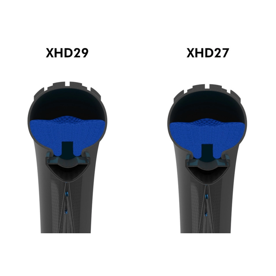 Die Seitenkanäle sind so geformt, dass sie einen Venturi-Effekt erzeugen, was bedeutet, dass die Geschwindigkeit des Luftstroms durch die Kanäle zunimmt, je kleiner die Kanäle sind. Dies ist das gleiche Prinzip wie der Bodeneffekt von Formel-1-Autos und ist notwendig, um die Luft von der Außenseite der Einlage nach innen, zwischen der Einlage und der Reifenbasis, zu beschleunigen. Die Luft wird im inneren Teil eingeschlossen und braucht viel länger, um zum äußeren Teil zurückzukehren, so dass im Moment des Aufpralls nur noch sehr wenig Luft am Polsterungspunkt verbleibt. Die Noppen auf der Oberseite des Einsatzes, die denen von las nachempfunden sind, und die wellenförmige Form sorgen dafür, dass die Luft nicht zum Reifen zurückprallt, was zu einem starken Rückpralleffekt führt, sondern in die Seitenkanäle strömt. Rollwiderstand: Tests von Drittanbietern haben gezeigt, dass der Rollwiderstand auf rauen Oberflächen um bis zu 9 % reduziert wird. Auch unter Berücksichtigung des Mehrgewichts las Einlagen ergibt sich immer eine höhere Steiggeschwindigkeit. Reifen-Bodendruck: 60 % höher, was die Traktion auf ein ganz neues Niveau bringt. Amortiguación : 55 % höher las Weniger Ermüdung und stabileres Fahren. Haltbarkeit: Tubolight Diamana besteht aus hochdichtem, geschlossenzelligem EVA-Schaum. Die Dichte und Härte müssen sehr hoch sein, um die Form während des Gebrauchs beizubehalten und einen konstanten Luftstrom zwischen den Kanälen zu gewährleisten. Das Ergebnis ist der langlebigste Einsatz, der jam hergestellt wurde, mit einer jahrelangen Lebensdauer, bevor ein Austausch erforderlich ist, selbst nach langem Notlaufgebrauch. Benutzerfreundlichkeit: Diamana ist ein einfach zu bedienendes Gerät. Die Installation ist sehr einfach. Zusammen mit den EVO-Einsätzen ist die Absorption 100% garantiert, frei von allen auf dem Markt erhältlichen Dichtmitteln und erfordert keine speziellen Ventile. Diamant XHD Extra robuste, harte Mischung in neuer Größe, die speziell für den Einsatz mit Hochleistungs-Doppellagenreifen entwickelt wurde. Einsatzgebiete: enduro , Downhill, E-Bikes. Gewicht: 205 Gramm (27,5 Zoll), 220 Gramm (29 Zoll). |