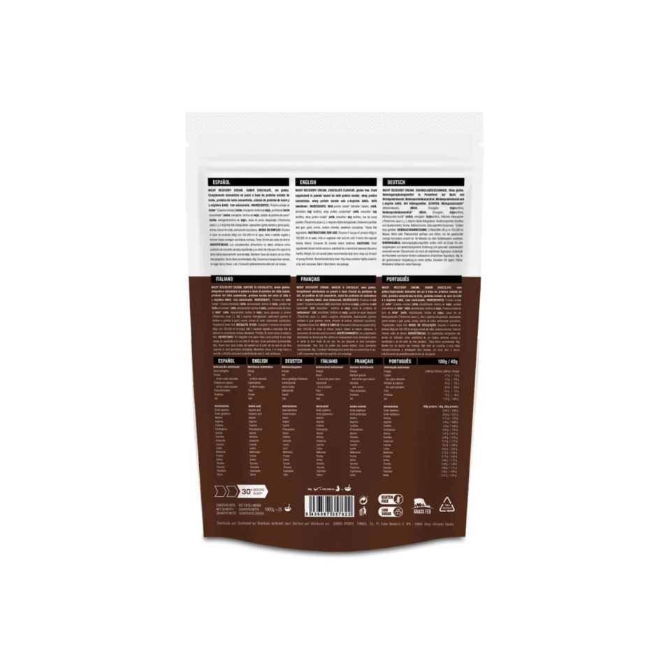 Mit der Night Recovery Cream 2.0 erreichen wir ein breiteres Absorptionsprofil mit schnell assimilierten Proteinen aus der Molkenfraktion und einer längeren Freisetzung aus mizellarem Kasein. Milch ist ein nährstoffreiches Lebensmittel mit einem erheblichen Anteil an Mineralien, Vitaminen und Proteinen. Deshalb haben wir versucht, ihr volles Potenzial mithilfe ihrer beiden Hauptfraktionen auszuschöpfen: - Die las , die Molkenprotein (30 %) und Isolat (10 %) umfasst - Eine erneute Zufuhr von Kasein aus mizellarem Kasein (60 %), das durch Filtration gewonnen wird und so seine natürliche Struktur beibehält. Der Grund für die Herstellung dieser Mischung besteht nicht nur darin, ein Protein von hoher biologischer Wertigkeit mit allen essentiellen Aminosäuren zu erhalten oder eines las Proteine mit der höchsten Punktzahl im DIAAS (Index der verdaulichen unverzichtbaren Aminosäuren) zu haben, der Hauptgrund ist um ein Protein mit einem vollständigeren Absorptionsspektrum zu erhalten. Die 226ers Night Recovery Cream 2.0 1 kg wurde mit grasgefütterten Proteinquellen von hoher biologischer Wertigkeit formuliert, da sie nur von grasgefütterten Kühen ohne den Einsatz von Antibiotika oder Wachstumshormonen stammt und alle essentiellen Aminosäuren liefert, die für Wachstum und Erhaltung notwendig sind physiologischer las . Wie erhält man ein Protein mit einem größeren Absorptionsspektrum? Wir bezeichnen diese Erholung als „mehrphasig“, da jede Fraktion nach dem Verzehr des Produkts unterschiedlich reagiert. Die Absorptionsgeschwindigkeit von Whey-Protein und Isolat ist schneller, was zu einer akuten Freisetzung von Plasma-Aminosäuren führt, und mizellares Kasein erreicht im Laufe der Zeit eine langsamere, aber nachhaltigere Absorption, wodurch die Verfügbarkeit von Aminosäuren verlängert und die Mechanismen im Zusammenhang mit der Proteinsynthese nachhaltig stimuliert werden. Night Cream Recovery 2.0 kann ein guter Verbündeter bei Ihrer täglichen Erholung sein, indem es dazu beiträgt, den gesamten Proteinverbrauch zu erhöhen und ein korrektes anaboles Umfeld während las zu fördern. Ergänzt mit 1 Gramm Arginin AKG pro Portion. Arginin ist eine Aminosäure, die über den enzymatischen Weg der Stickstoffmonoxid-Synthase (NOS) als Vorstufe von Stickstoffmonoxid fungiert und mit einer Verbesserung der körperlichen Leistungsfähigkeit durch mögliche Auswirkungen auf die Endothelfunktion, eine größere aerobe und anaerobe Kapazität und Kraft in Verbindung gebracht wird , Kraft oder Ausdauer. NUTZUNGSART Lösen Sie 2 Messlöffel (40 g) des Produkts mit 150–200 ml Wasser, Milch oder Gemüsegetränk auf und rühren Sie, bis die gewünschte Konsistenz erreicht ist. 30 Minuten vor dem Schlafengehen einnehmen. |